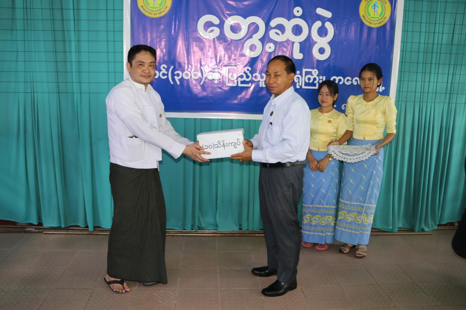 ယင်းနောက် တိုင်းဒေသကြီးဝန်ကြီးချုပ်က တွေ့ဆုံပွဲသို့တက်ရောက်လာသူများ၏ ဆွေးနွေးတင်ပြချက်များအပေါ် လိုအပ်သည်များကို တာဝန်ရှိသူများနှင့် ဖြည့်ဆည်းပေါင်း စပ်ဆောင်ရွက်ပေးကာ ခေတ္တဆေးရုံအုပ်ကြီးထံ ဆေးရုံဝန်ထမ်းများအတွက် ငွေကျပ် - ၁၀ သိန်းအား ပေးအပ်ခဲ့သည်။