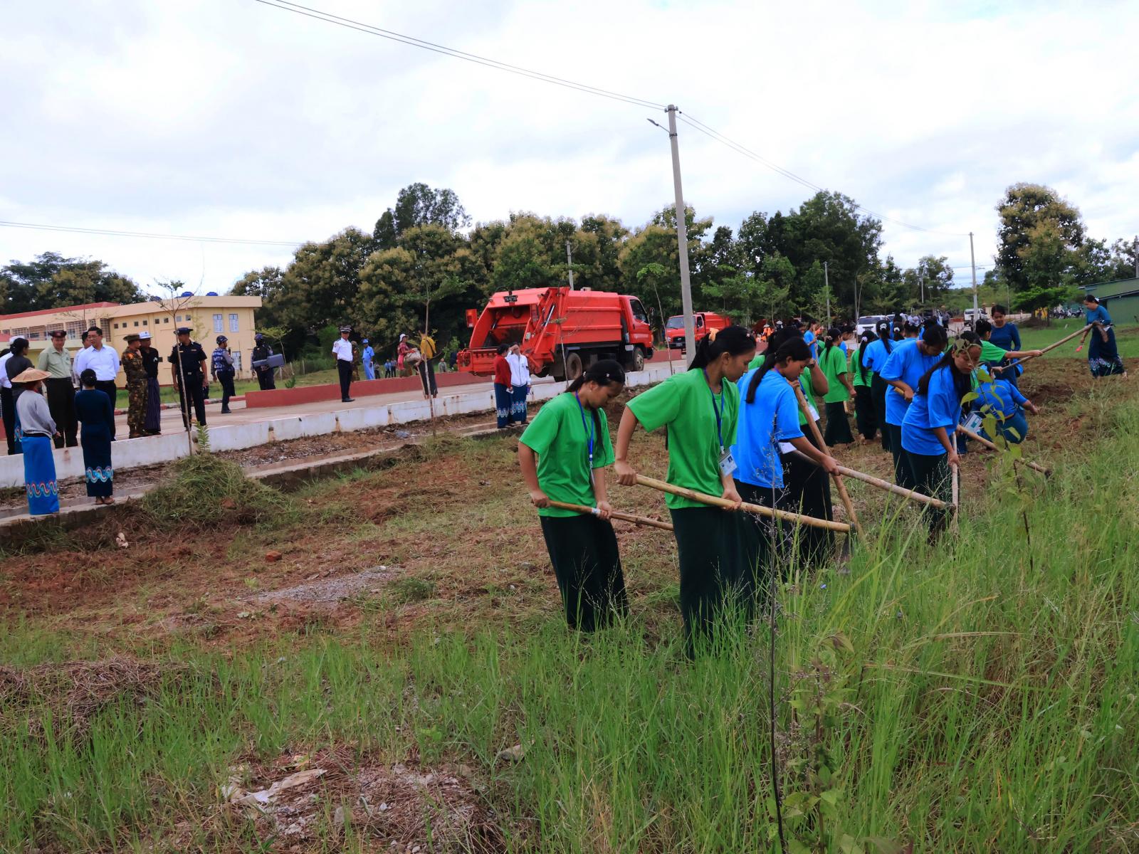 ဆက်လက်၍ ကွန်ပျူတာတက္ကသိုလ်(လွိုင်ကော်)သို့ ရောက်ရှိကာ ကျောင်းဝင်းအတွင်း နယ်မြေခံတပ်ရင်းတပ်ဖွဲ့များ၊ ရဲတပ်ဖွဲ့ဝင်များ၊ ဌာနဆိုင်ရာဝန်ထမ်းများက စုပေါင်းသန့်ရှင်းရေး ဆောင်ရွက်နေမှုအား လှည့်လည်ကြည့်ရှုအားပေးပြီး ကျောင်းဝင်းအတွင်းနှင့် ကျောင်းအုတ်တံတိုင်း ခြံစည်းရိုးတစ်လျှောက်တွင် အရိပ်ရပင်နှင့် လေကာပင်များ စနစ်တကျ စိုက်ပျိုးသွားရန် တာဝန်ရှိသူများအား မှာကြားခဲ့သည်။ ထို့နောက် ကွန်ပျူတာတက္ကသိုလ်၌ အဆောင်နေ ကျောင်းသား၊ ကျောင်းသူများ၊ ကွန်ပျူတက္ကသိုလ်နှင့် နည်းပညာတက္ကသိုလ်မှ ဆရာ၊ ဆရာမများနှင့် ဝန်ထမ်းများအား ရင်းရင်းနှီးနှီး နှုတ်ဆက်အားပေးစကားပြောကြားခဲ့သည်။