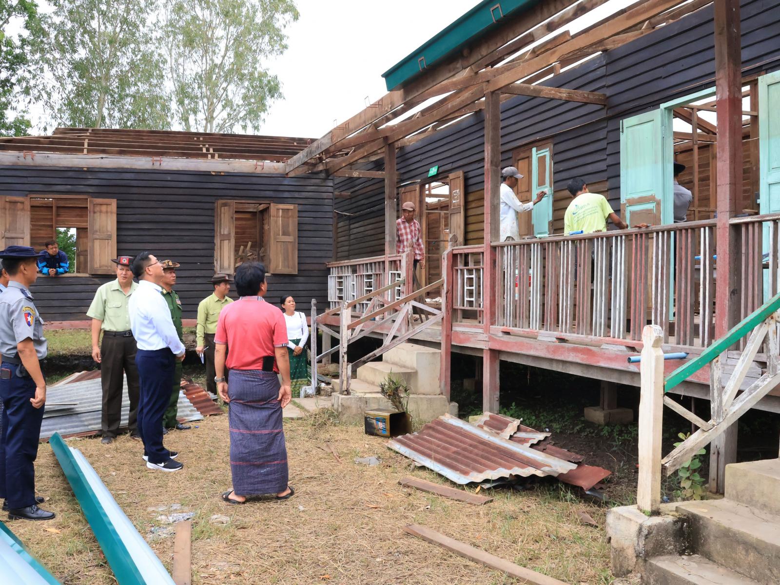 ထို့နောက် မှုံပြာကျေးရွာ အခြေခံပညာမူလတန်းကျောင်းသို့ ရောက်ရှိပြီး ကျောင်းပြန်လည်ရွှေ့ပြောင်းဖွင့်လှစ်နိုင်ရေး ကျောင်းဆောင်များ ပြန်လည်ပြုပြင်ဆောင်ရွက်နေမှုနှင့် ကျေးရွာပြည်သူ များက ကျောင်းဝန်းအတွင်း စုပေါင်းသန့်ရှင်းရေး ဆောင်ရွက်နေမှုအား ကြည့်ရှုရာ ကျောင်းအုပ်ကြီးနှင့် တာဝန်ရှိသူများက လုပ်ငန်းဆောင်ရွက်မှုများအား လိုက်လံရှင်းလင်းတင်ပြကြသည်။ ပြည်နယ် ဝန်ကြီးချုပ်က ကျောင်းပြန်လည်ပြောင်းရွှေ့ဖွင့်လှစ်နိုင်ရေး အမြန်ပြုပြင်ပေးရန်၊ သင်ထောက်ကူပစ္စည်းများ ပြည့်စုံစေရေးနှင့် အသင့်ဖြစ်စေရေး ဆောင်ရွက်ထားရှိရန် တာဝန်ရှိသူများအား မှာကြား ပြီး လိုအပ်သည်များ ပေါင်းစပ်ညှိနှိုင်းပေးခဲ့ကြောင်း သိရသည်။