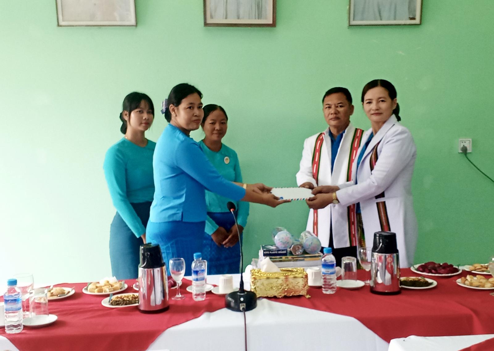 စစ်ကိုင်းတိုင်းဒေသကြီး၊ ကလေးခရိုင်/မြို့နယ် အမျိုးသမီးရေးရာအဖွဲ့ဥက္ကဋ္ဌနှင့် အဖွဲ့ဝင်များသည် ယနေ့နံနက် ၁၀ နာရီအချိန်က ချမ်းမြေ့အောင်စည်ရပ်ကွက်၊ နယ်မြေ (၉)၊ မိုးလင်းရှောင်စောန်းဘုရားကျောင်းသို့ သွားရောက်၍ အဆိုပါကျောင်းပြတိုက်တွင် ပြသထားသည့် ချင်းတိုင်းရင်းသားတို့၏ ခေတ်အဆက်ဆက်ရိုးရာဓလေ့ဝတ်စားဆင်ယင်မှုနှင့် ရှေးဟောင်းအသုံးအဆောင်ပစ္စည်းများကို လေ့လာခဲ့ပြီး ကျောင်းသား/ ကျောင်းသူများအတွက် စာအုပ်၊ စာရေးကိရိယာနှင့် အလှူငွေ ၂ဝဝဝဝဝ ကျပ်အား ပေါင်ကျင့်ဟောက်ပါရှန်စောန်း တမန်တော်မြတ် မိုးလင်းရှောင်စောင်းဆရာတော်ကြီးထံ ပေးအပ်ခဲ့သည်။