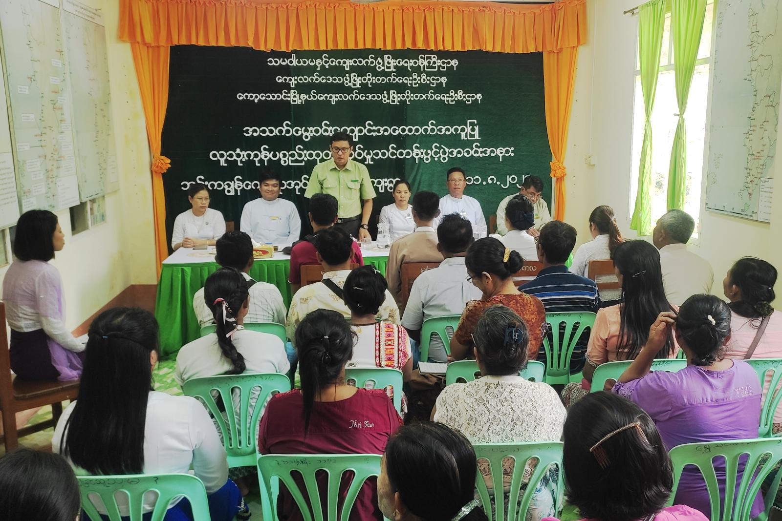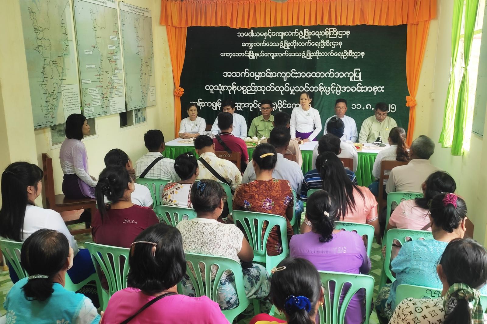 သမဝါယမနှင့်ကျေးလက်ဖွံ့ဖြိုးရေးဝန်ကြီးဌာန၊ ကော့သောင်းမြို့နယ်၊ ကျေးလက်ဒေသဖွံ့ဖြိုးတိုးတက်ရေးဦးစီးဌာနမှ ဘန်းကချွန်ကျေးရွာအုပ်စု၊(၁၄)မိုင်ကျေးရွာတွင် ဖွင့်လှစ်မည့် အသက်မွေးဝမ်းကျောင်းအထောက်အကူပြု လူသုံးကုန်ပစ္စည်းထုတ်လုပ်မှုသင်တန်းဖွင့်ပွဲ အခမ်းအနားကို ယနေ့နံနက်ပိုင်းက ကော့သောင်းမြို့၊ သီရိမြိုင်ရပ်ကွက်ရှိ ကော့သောင်းမြို့နယ်၊ ကျေးလက်ဒေသဖွံ့ဖြိုးတိုးတက်ရေးဦးစီးဌာနရုံး၊ အစည်းအဝေးခန်းမတွင်ကျင်းပရာ အဆိုပါ အခမ်းအနသို့ ကော့သောင်းမြို့နယ်စီမံခန့်ခွဲရေးနှင့် အုပ်ချုပ်ရေးကော်မတီဥက္ကဋ္ဌနှင့် ခရိုင်နှင့် မြို့နယ်ဌာနဆိုင်ရာမှ တာဝန်ရှိသူများ၊ ဘန်းကချွန်ကျေးရွာအုပ်စု၊ (၁၄)မိုင်ကျေးရွာမှ ရပ်မိရပ်ဖများ၊ သင်တန်းသား၊ သင်တန်းသူများတက်ရောက်ခဲ့သည်။