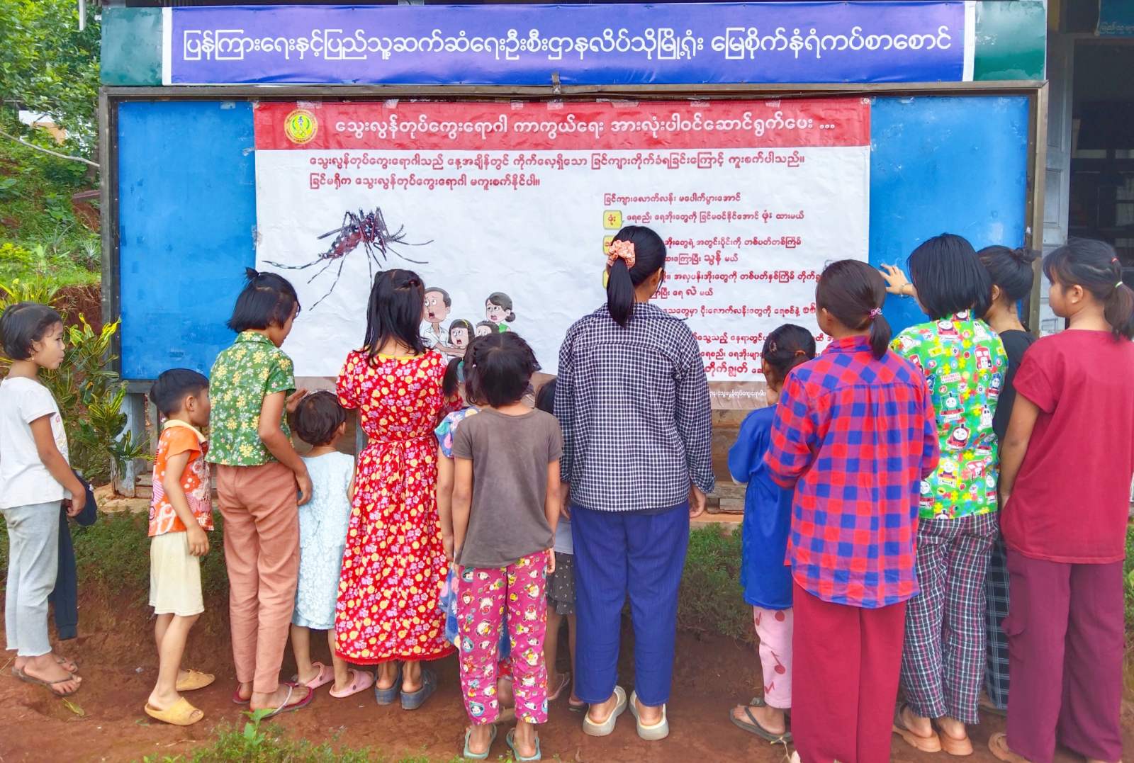 ဆက်လက်၍ဟောပြောပွဲအပြီးတွင် သွေးလွန်တုပ်ကွေးရောဂါကာကွယ်ရေး အသိပညာပေးနံရံကပ်စာစောင်အားပြသခဲ့ရာ ဒေသနေပြည်သူများနှင့် ကျောင်းသား၊ ကျောင်းသူများက လေ့လာကြည့်ရှုမှတ်သား၍ သိရှိလိုသည်များအား မေးမြန်းခဲ့ကြောင်း သိရသည်။