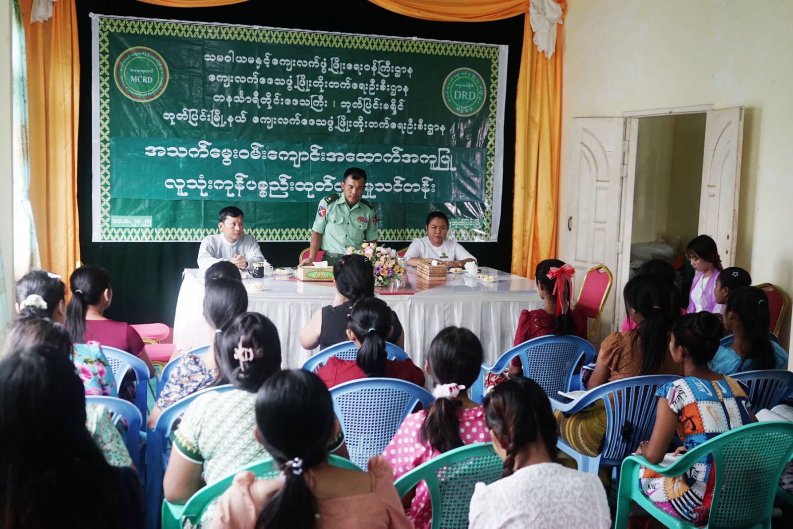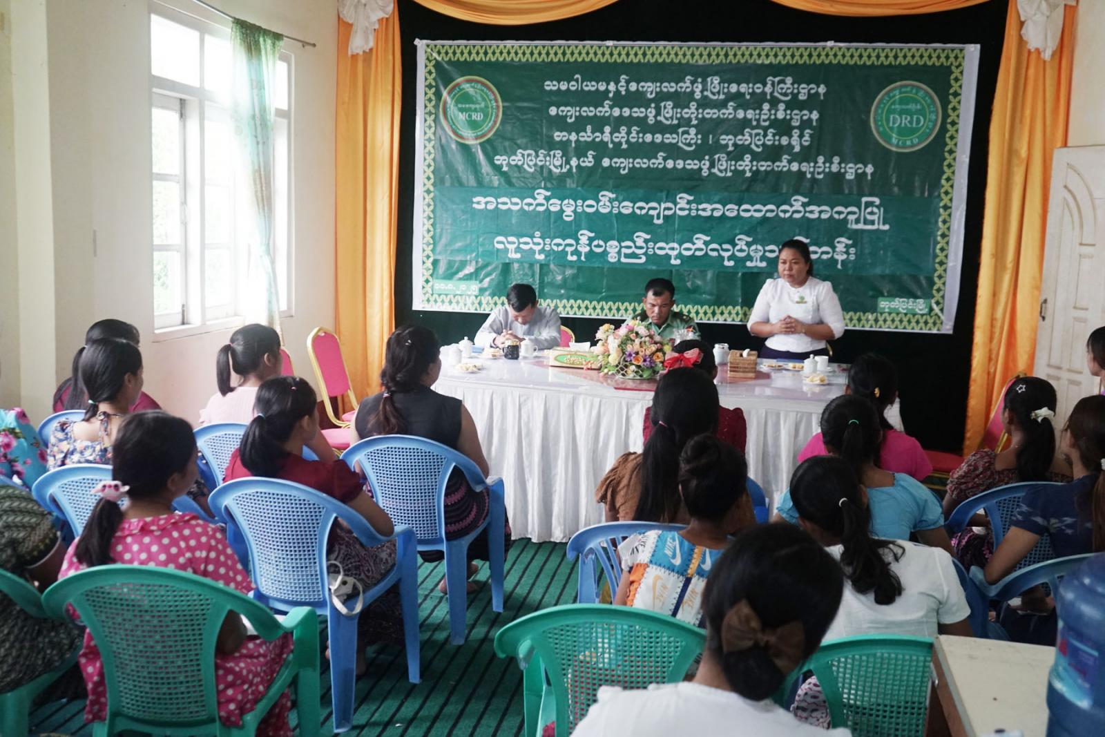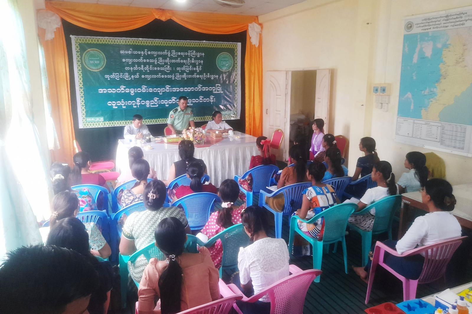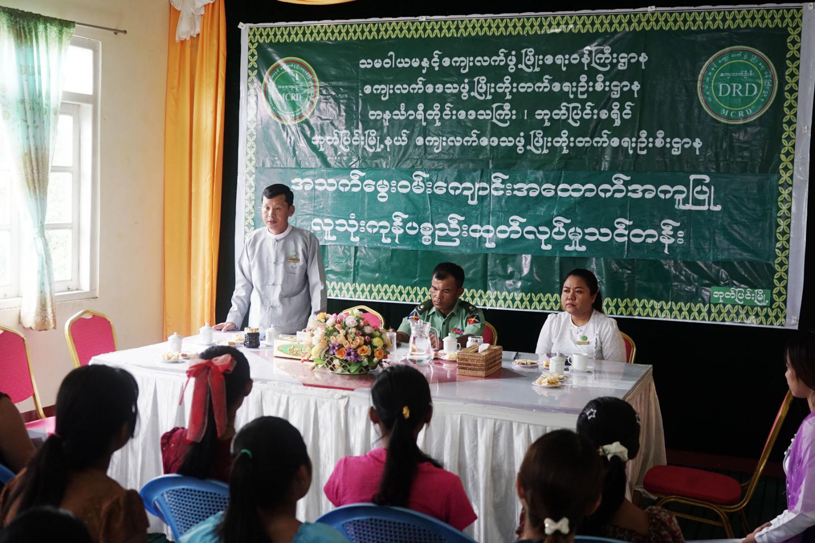 သင်တန်းတွင် ဘုတ်ပြင်းခရိုင်ကျေးလက်ဒေသဖွံ့ဖြိုးတိုးတက်ရေးဦးစီးဌာန ခရိုင်ဦးစီးမှူး ဦးသန်းထွန်းဦးနှင့်ဘုတ်ပြင်းမြို့နယ် စီမံခန့်ခွဲရေးနှင့်အုပ်ချုပ်ရေးကော်မတီအဖွဲ့ဝင် ဗိုလ်မှူး ရဲလင်းဦးတို့က သင်တန်းအဖွင့်အမှာစကားပြောကြားသည်။ ဆက်လက်၍မြို့နယ်ကျေးလက်ဒေသ ဖွံ့ဖြိုးတိုးတက်ရေးဦးစီးဌာန မြို့နယ်ဦးစီးမှူး ဒေါ်အေးသက်သက်ခိုင်က သင်တန်းဖွင့်လှစ်ရသည့် ရည်ရွယ်ချက်များ၊ သင်တန်းတွင် င်ကြားမည့် အခန်းကဏ္ဍများနှင့်ပတ်သက်၍ ရှင်းလင်း ပြောကြားခဲ့သည်။