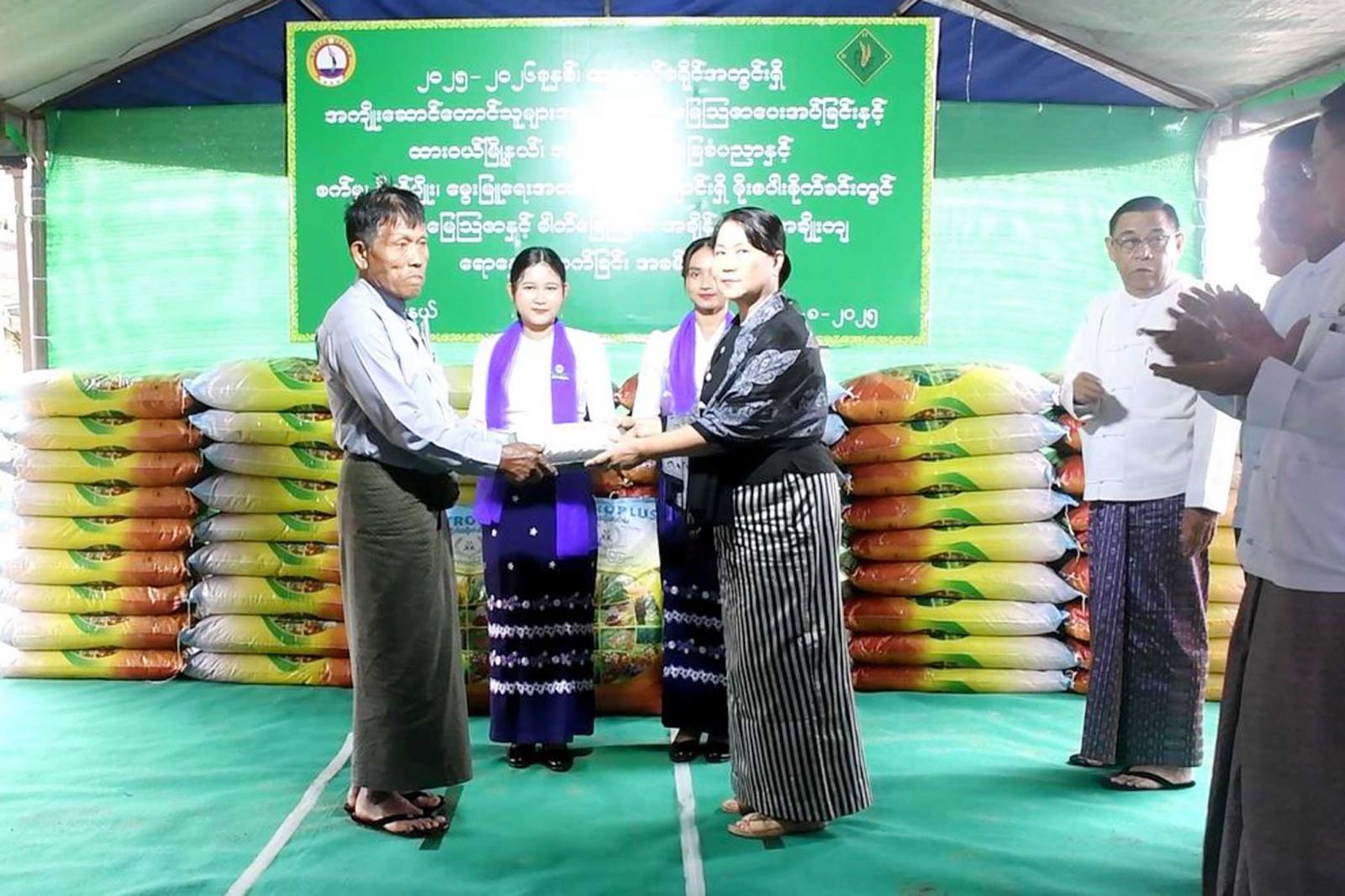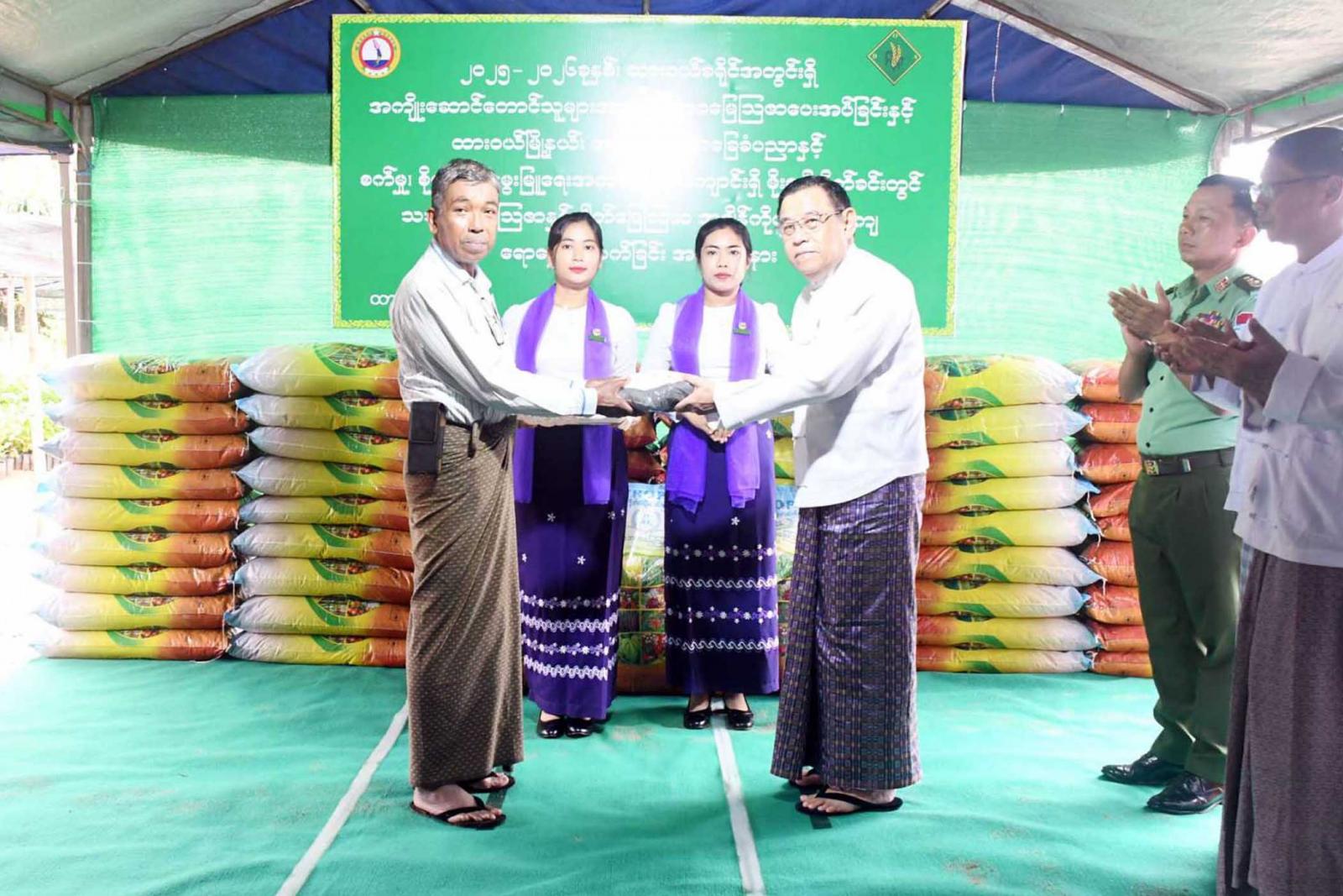 ဦးစွာတိုင်းဒေသကြီးဝန်ကြီးချုပ်ဦးမြတ်ကို၊ နှင့်တာဝန်ရှိသူများက ထားဝယ်ခရိုင်အတွင်းရှိ တောင်သူများ အား သဘာဝမြေသြဇာ အိတ် ၁၀၀ ကို လွှဲပြောင်းပေးအပ်သည်။ ထို့နောက်တိုင်းဒေသကြီးဝန်ကြီးချုပ်က မိုးစပါးပန်းတိုင်အထွက်နှုန်းရရှိရေး စံပြကွက်နှင့်အကျိုး ဆောင်တောင်သူများက မိုးစပါးစိုက်ခင်းအတွင်း သဘာဝမြေဩဇာနှင့် ဓာတ်မြေဩဇာအချိန်ကိုက်၊ အချိုးကျရောနှောကြဲပက်နေမှု၊ ဟင်းရွက်စိုက်ခင်း၊ တိရစ္ဆာန်အစာပင် နေပီယာပတ်ချောင်းမြက်စိုက်ခင်းနှင့်သီးနှံပင်များအား ကြည့်ရှုအားပေးပြီး လိုအပ်သည်များကို တာဝန်ရှိသူမျာအား မှာကြားသည်။