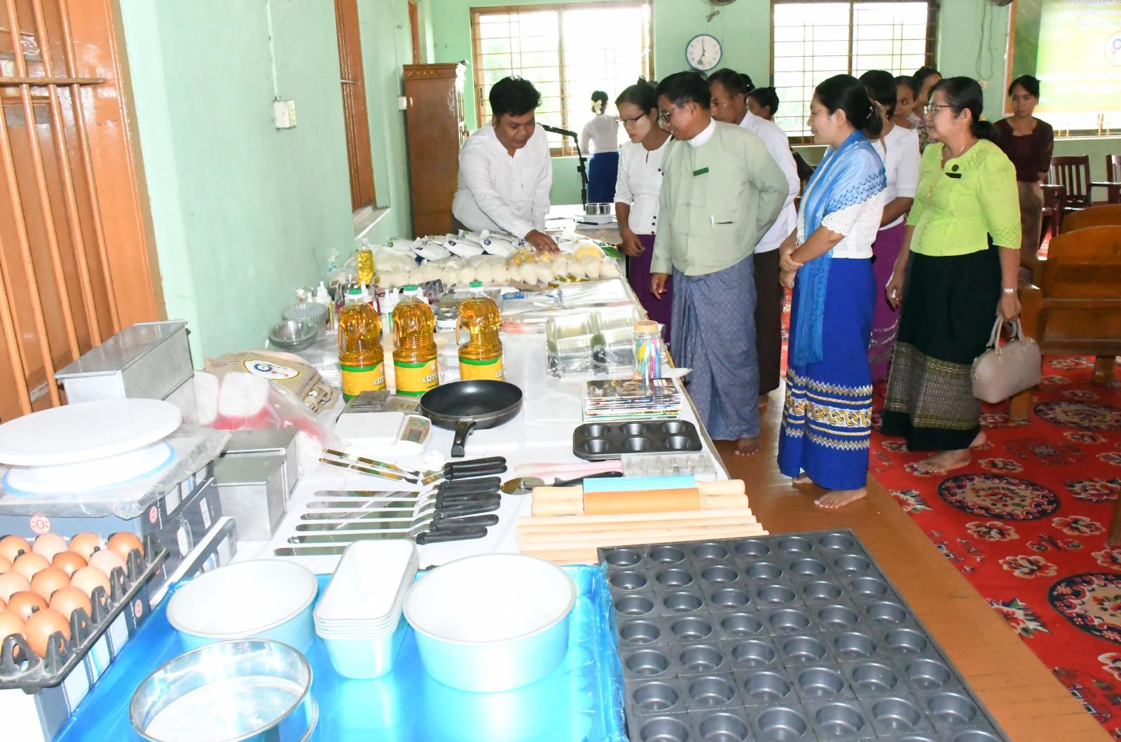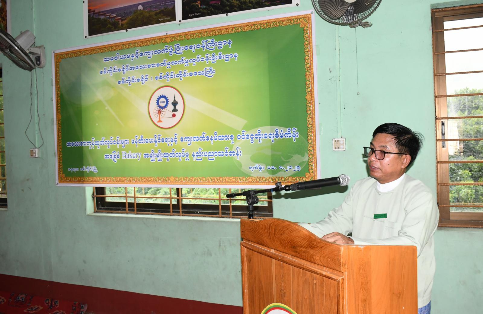 ထို့နောက် မြို့နယ်စီမံခန့်ခွဲရေးနှင့်အုပ်ချုပ်ရေးကော်မတီအဖွဲ့ဝင် ဦးခင်ဇော်နှင့် တာဝန်ရှိသူများက ကျေးလက်နေမိသားစုဝင်ငွေတိုးရေးစီမံကိန်းနှင့် သင်ထောက်ကူပစ္စည်းများကိုပေးအပ်ရာ သင်တန်းသူများက လက်ခံရယူခဲ့ကြသည်။ အဆိုပါတန်ဖိုးမြှင့်စားသောက်ကုန် (Bakery) အမျိုးမျိုး ထုတ်လုပ်မှုနည်းပညာသင်တန်းကို (၇) ရက် ကြာဖွင့်လှစ်သင်ကြားမည်ဖြစ်ပြီး သင်တန်းသူ(၁၅)ဦး တက်ရောက်ကြကြောင်း သိရသည်။