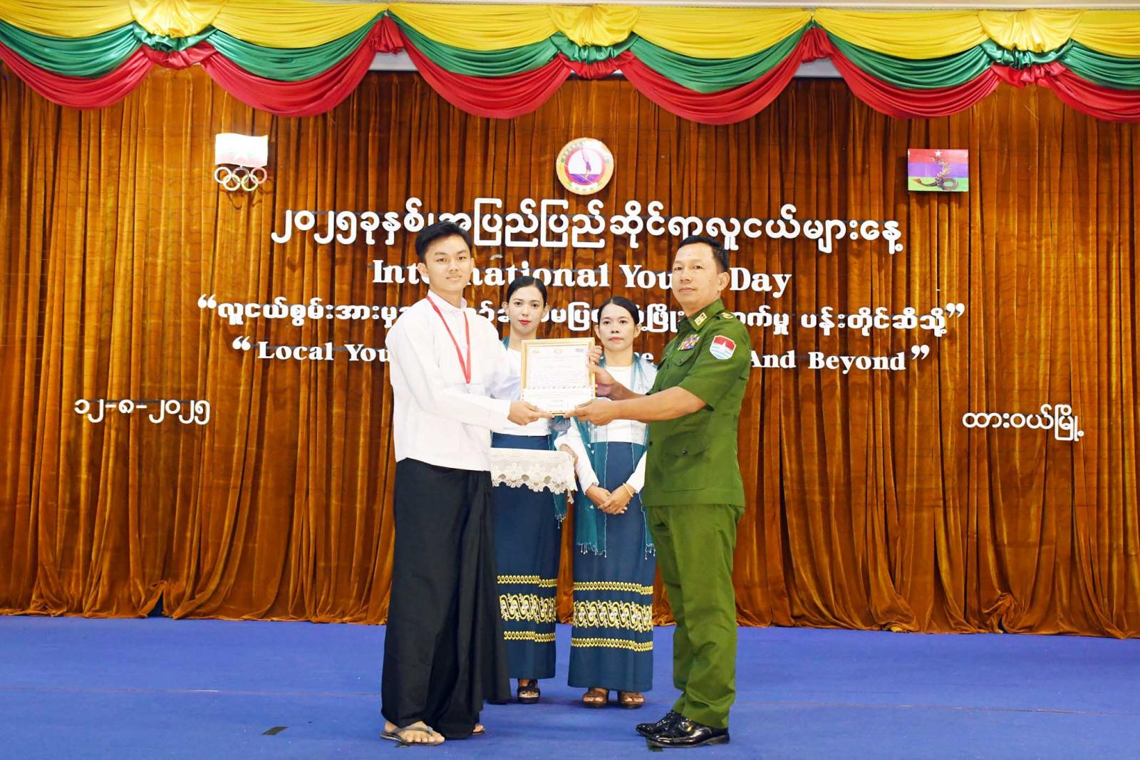 အခမ်းအနားတွင်တိုင်းဒေသကြီး ဝန်ကြီးချုပ်က အပြည်ပြည်ဆိုင်ရာ လူငယ်များနေ့ အခမ်းအနားကို နှစ်စဉ်ဩဂုတ်၁၂ရက်ရောက်တိုင်း ကမ္ဘာ့နိုင်ငံအသီးသီးတွင် ကျင်းပလေ့ရှိသကဲ့သို့ မြန်မာနိုင်ငံတွင်လည်း ရပ်ရွာအကျိုးပြုလုပ်ငန်းများ၊ နိုင်ငံတော်ဖွံ့ဖြိုးတိုးတက်ရေးလုပ်ငန်းများ လူငယ်များပိုမိုပူးပေါင်းပါဝင်လာစေရန်၊ အပြည်ပြည်ဆိုင်ရာလူငယ်များနေ့ကို လူငယ်လူရွယ်များပိုမိုသိရှိပြီး ပါဝင်ဆင်နွှဲလာကြစေရန်နှင့် လူငယ်များ၏လိုလားချက်များ ဖြည့်ဆည်းဆောင်ရွက်ပေးနိုင်ရန် ရည်ရွယ်ချက်များဖြင့် နှစ်စဉ်ကျင်းပလျက်ရှိကြောင်း၊ မြန်မာနိုင်ငံ လူငယ်ရေးရာကော်မတီအနေဖြင့် ဆယ်ကျော်သက်လူငယ်များကျန်းမာကြံ့ခိုင်ရေး၊ စိတ်ဓာတ်၊ စည်းကမ်း၊ လူ့ကျင့်ဝတ်၊ လူ့တန်ဖိုးနှင့် ပြည်ထောင်စုစိတ်ဓာတ်များရှင်သန်ဖွံ့ဖြိုးတိုးတက်လာစေရန်အတွက် လူငယ်ရေးရာ အသိပညာပေး ဟောပြောပွဲများလူငယ် စကားဝိုင်းများကို နိုင်ငံတစ်ဝန်းကျင်းပပေးလျက်ရှိသကဲ့သို့ လူငယ်များအလုပ်အကိုင်အခွင့်အလမ်းရရှိစေရန် နည်းပညာပေးသင်တန်းများကိုလည်း ဖွင့်လှစ်သင်ကြားပေးလျှက်ရှိကြောင်း၊ ယနေ့လူငယ် နောင်ဝယ်လူကြီး ဆိုသကဲ့သို့ လူငယ်များသည် နောင်တွင် ဦးစီးဦးဆောင်ပြုရမည့်သူများဖြစ်လာကြမည်ဖြစ်ကြောင်း၊ စည်းလုံးညီညွတ်ပြီး သဟဇာတဖြစ်သည့် အနာဂတ်လူ့ဘောင်အဖွဲ့အစည်းကို ထူးချွန်ထက်မြက်သော၊ ကျန်းမာကြံ့ခိုင်သည့် မှန်မှန်ကန်ကန်တွေးခေါ်နိုင်စွမ်းရှိပြီးအကျင့် စာရိတ္တကောင်းမွန်သော၊ စိတ်ဓာတ်စည်းကမ်း ကောင်းမွန်သော လူတော်လူကောင်းများနှင့်သာလျှင် ဖန်တီးတည်ဆောက်နိုင်ရန် နိုင်ငံ၏အနာဂတ်အတွက် မျှော်ကိုးပြီး လူငယ်များဘက်စုံဖွံ့ဖြိုး တိုးတက်ရေးလုပ်ငန်းစဉ်များကို သက်ဆိုင်ရာဌာနများ၊ အဖွဲ့အစည်းများ၊ ကော်မတီဝင်များနှင့် တာဝန်ရှိသူအားလုံးက ကြိုးပမ်းအားထုတ်သွားကြရန် လိုအပ်ကြောင်းပြောကြားသည်။