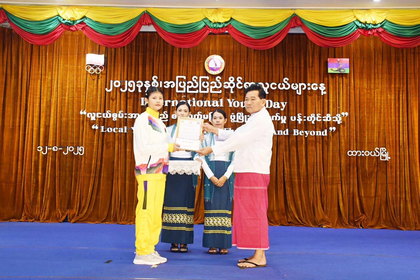 ထို့နောက်အပြည်ပြည်ဆိုင်ရာလူငယ်များနေ့အတွက် ကုလသမဂ္ဂ အထွေထွေအတွင်းရေးမှူးချုပ်က ပေးပို့သော သဝဏ်လွှာအား တိုင်းဒေသကြီးလူမှုရေးရာဝန်ကြီးဦးသက်နိုင်က ဖတ်ကြားသည်။