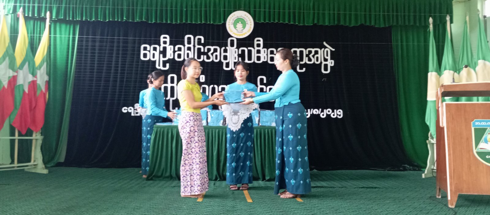 ဆက်လက်ပြီး ရေဦးမြို့နယ် အမျိုးသမီးရေးရာအဖွဲ့ဥက္ကဋ္ဌနှင့် သက်ဆိုင်ရာ တာ၀န်ရှိသူများက သင်တန်းနည်းပြနှင့် သင်တန်းသားများအား အမှတ်တရပစ္စည်းနှင့် သင်တန်း၀တ်စုံများ အသီးသီး ပေးအပ်ခဲ့ကြသည်။