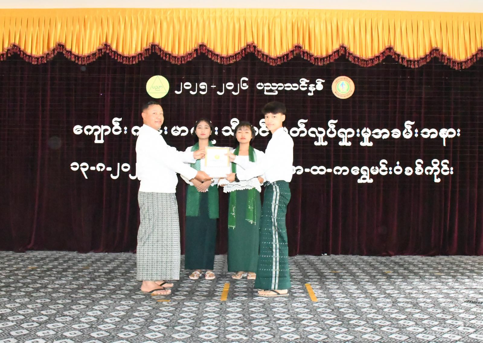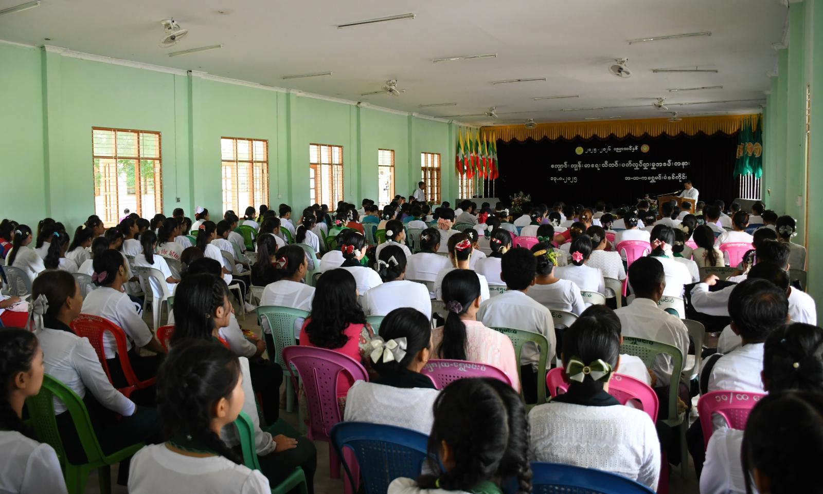 ဆက်လက်ပြီး တိုင်းဒေသကြီးအစိုးရအဖွဲ့ လူမှုရေးရာဝန်ကြီး ဦးညွန့်ဝင်းအောင်နှင့်တာဝန်ရှိသူများက ကျောင်းကျန်းမာရေး သီတင်းပတ်လှုပ်ရှားမှု အထိမ်း အမှတ် စာစီစာကုံး ပြိုင်ပွဲတွင် ဆုရရှိသူများအား ဆုများအသီးသီးပေးအပ်ချီးမြှင့်ခဲ့ပြီး ကျောင်းသား၊ ကျောင်းသူ လေးများက အေရိုးဗစ်အကများဖြင့် ဖျော်ဖြေပေးခဲ့ကြသည်။