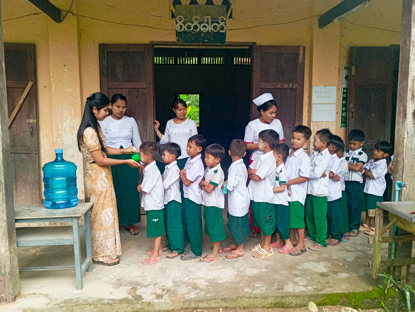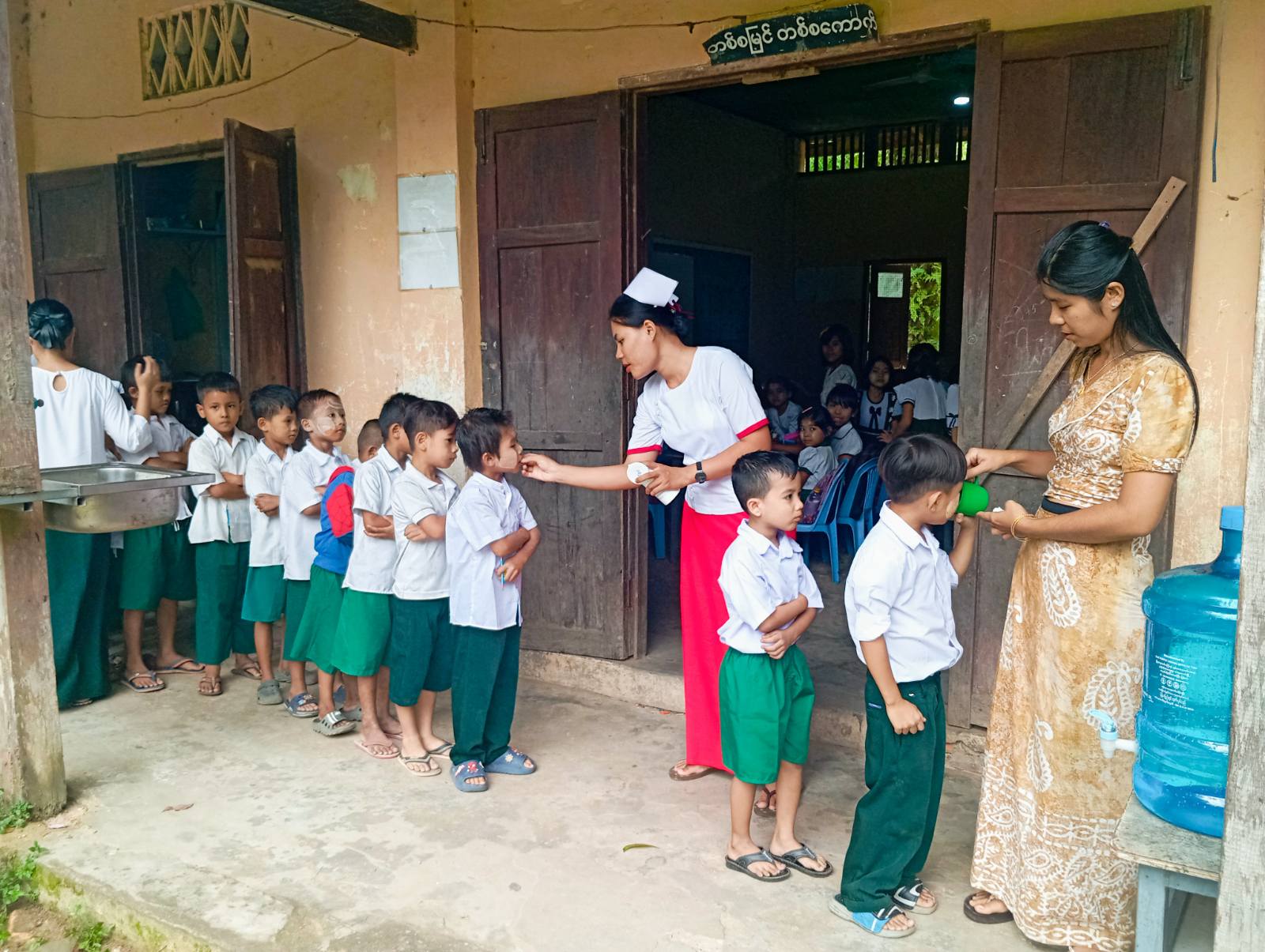 အဆိုပါ ဗီတာမင်အေဆေးလုံးနှင့် သန်ချဆေးတိုက်ကျွေးခြင်းကို ကျေးလက်ကျန်းမာရေးဌာနခွဲ ဘက်စုံသားဖွားဆရာမ ဒေါ်ခိုင်ယမင်းပွင့်က(KG)တန်းမှ ကျောင်းသား၊ ကျောင်းသူများအား အင်အားပြည့်ဗီတာမင်အေနှင့် သန်ချဆေးတိုက်ကျွေးခဲ့ပြီး အလယ်တန်းကျောင်းသား၊ ကျောင်းသူများကို သန်ချဆေးသောက်သုံးခြင်း၏ အကျိုးကျေးဇူးများနှင့် တစ်ကိုယ်ရေသန့်ရှင်းရေးအသိပညာပေးဟောပြောခဲ့ကြောင်း သိရသည်။