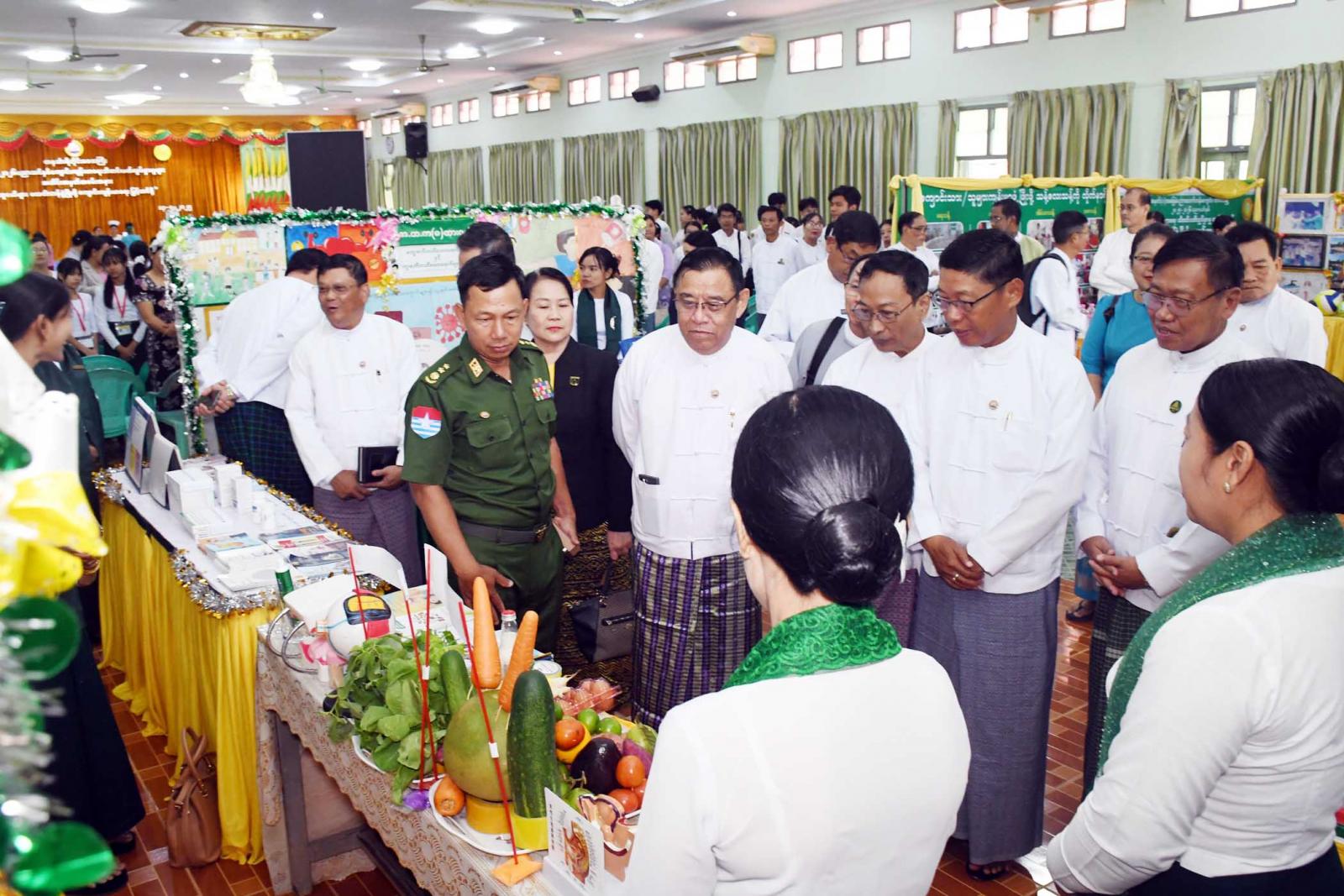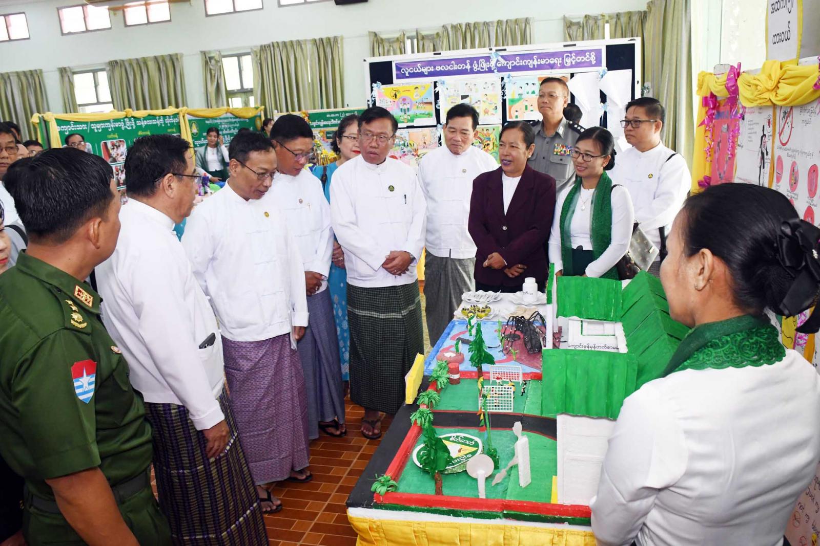ထို့နောက်တိုင်းဒေသကြီးဝန်ကြီးချုပ်က ခန်းမအတွင်း ခင်းကျင်းပြသထားသည့် အခြေခံပညာကျောင်းများမှ ကျောင်းကျန်းမာရေး သီတင်းပတ်လှုပ်ရှားမှုမှတ်တမ်းများအား လှည့်လည် ကြည့်ရှု အားပေးပြီး ဂုဏ်ပြုဆု ငွေများ ချီးမြှင့်ကြောင်း သတင်းရရှိသည်။