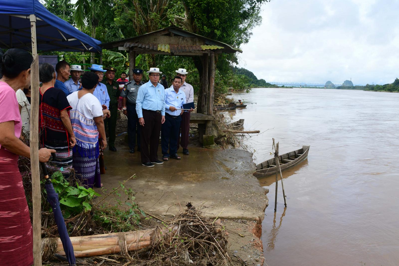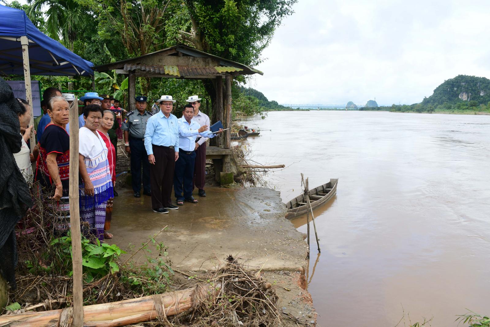 ကရင်ပြည်နယ် ဘားအံမြို့တွင် ရေကြီးရေလျှံမှုဖြစ်စဉ်များကြောင့် ဘားအံမြို့ အမှတ်(၈) ရပ်ကွက်တွင် သံလွင်မြစ်ကမ်းပါး အလျား ပေ၂၉၀၀ ခန့် ပြိုကျမှုဖြစ်ပွားခဲ့ရာ ပြည်နယ်ဝန်ကြီးချုပ် ဦးစောမြင့်ဦးနှင့် တာဝန်ရှိသူများသည် ဩဂုတ် ၁၃ ရက် နံနက်ပိုင်းက သွားရောက်ကြည့်ရှုစစ်ဆေးသည်။