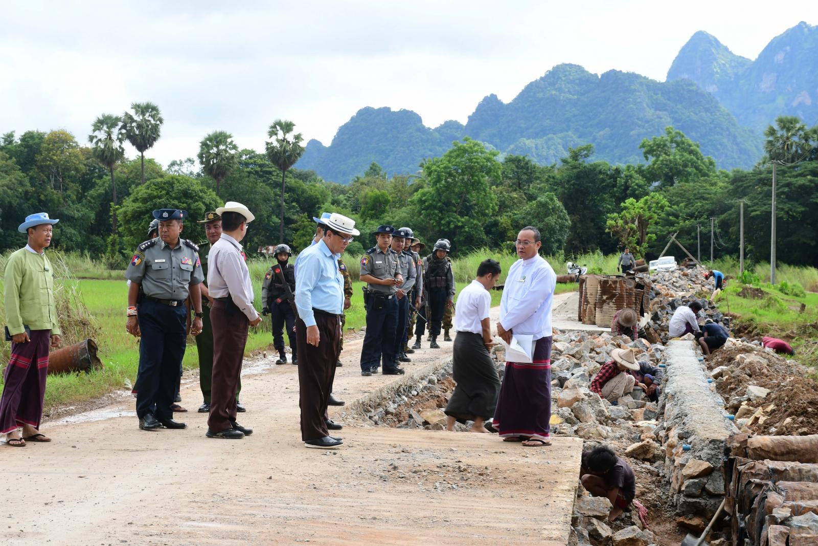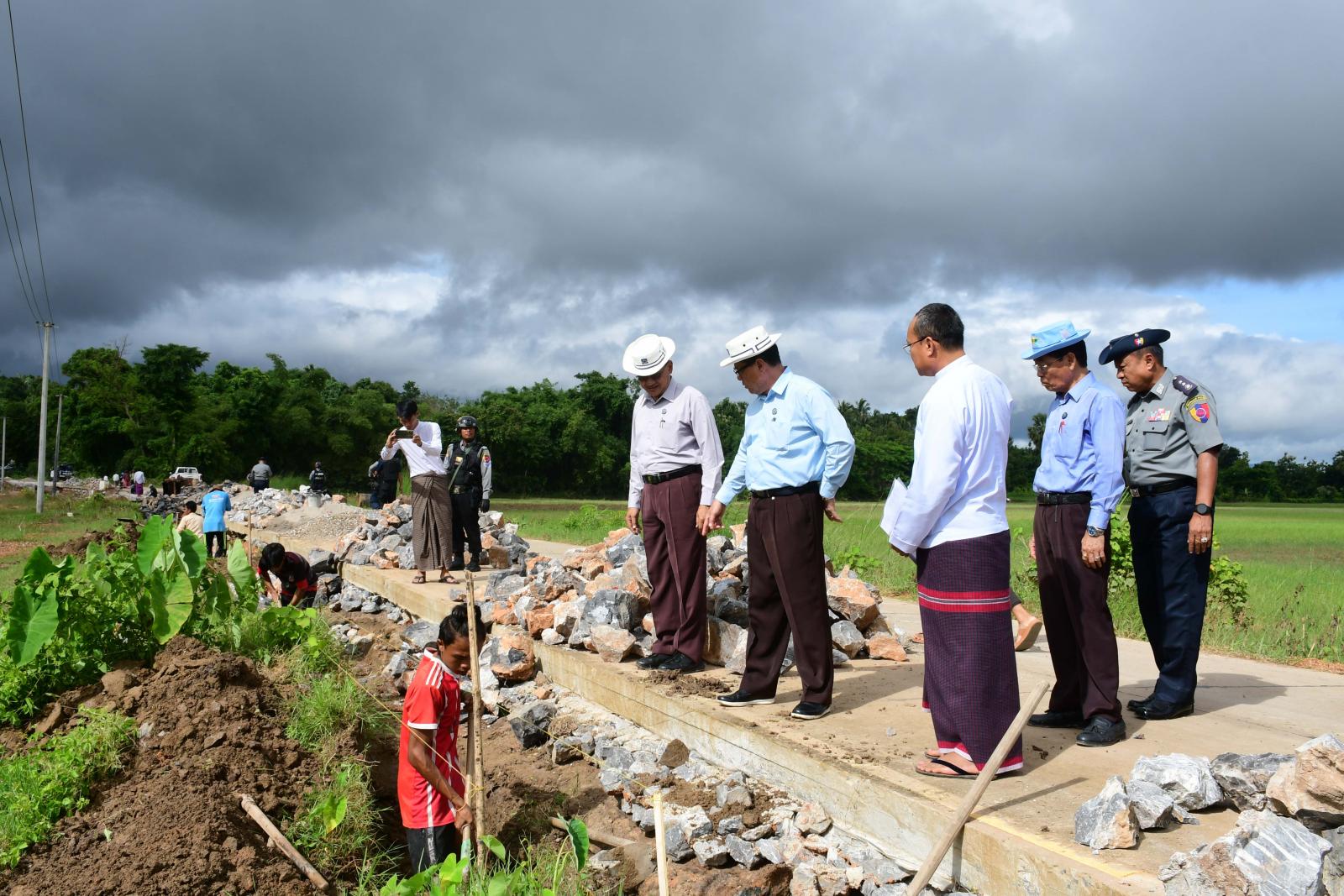 ယင်းနောက် ပြည်နယ်ဝန်ကြီးချုပ်နှင့်တာဝန်ရှိသူများသည် ဘားအံမြို့နယ်၊ လှိုင်ရွာ-ကော့သပုတ်-ကော့ဒါန်းမယ်-ကောထမလိန်းလမ်း ရေကြီး၊ရေတိုက်စားခြင်းကြောင့် လမ်းပခုံးနှင့်လမ်းတာပေါင် ထိခိုက်ပျက်စီးမှုကို ကျေးလက်လမ်းဖွံ့ဖြိုးရေးဦးစီးဌာနမှ ကျောက်ကြီးဖြည့်သဲကြပ်ခြင်း၊ ကျောက်စီနံရံပြုလုပ်ခြင်း၊ လမ်းပခုံး တုတ်ရိုက်ခြင်းတို့အား ကြည့်ရှုစစ်ဆေးပြီး သဘာဝဘေးကြောင့် ထိခိုက်ပျက်စီးလမ်းပိုင်းများအား အမြန်ဆုံးပြင်ဆင် ဆောင်ရွက်၍ အများပြည်သူ စိတ်အေးချမ်းသာ စွာ ဖြတ်သန်းသွားလာနိုင်ရေး ကြိုးပမ်းဆောင်ရွက်ပေးကြရန် တာဝန်ရှိသူများအား မှာကြားသည်။
