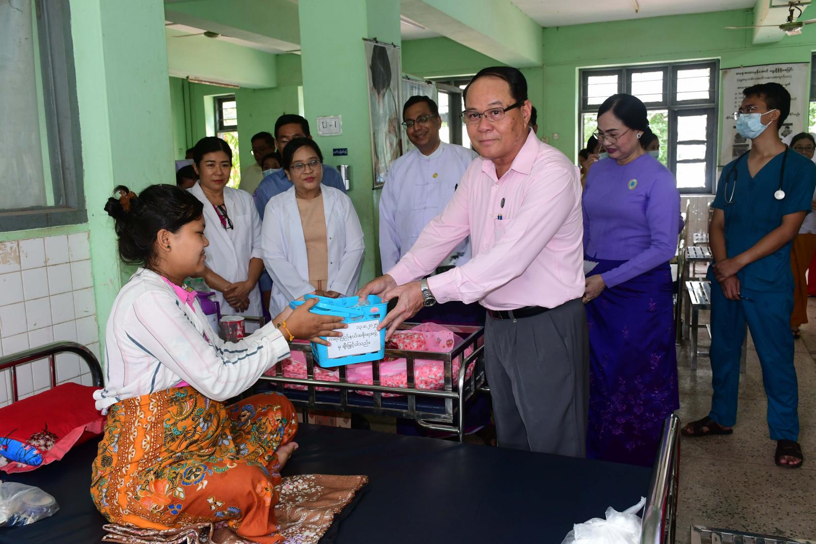 ထို့နောက် ပြည်နယ်ဝန်ကြီးချုပ်၊ ပြည်နယ်အစိုးရအဖွဲ့ဝင်များ၊ ပြည်နယ်အမျိုးသမီးရေးရာအဖွဲ့နှင့် မိခင်နှင့် ကလေးစောင့်ရှောက်မှုကြီးကြပ်ရေးအဖွဲ့ နာယကနှင့်အဖွဲ့ဝင်များသည် ပြည်နယ် ပြည်သူ့ဆေးရုံကြီး(ဘားအံ)သို့ သွားရောက်ပြီး ဆေးရုံတက်ရောက်ကုသမှုခံယူနေသူများအား ရင်းနှီးနွေးထွေးစွာတွေ့ဆုံနှုတ်ဆက်အားပေးပြီး အာဟာရဖြည့်စွက်အစားအစာများ ချီးမြှင့်ပေးအပ်သည်။ ဆက်လက်၍ အဆိုပါဆေးရုံတွင် တာဝန်ထမ်းဆောင်လျက်ရှိသော ဆေးရုံအုပ်ကြီးနှင့် ကျန်းမာရေးဝန်ထမ်းများအတွက် စားသောက်ကုန်ပစ္စည်းများပေးအပ်ချီးမြှင့်ခဲ့ကြ သည်။