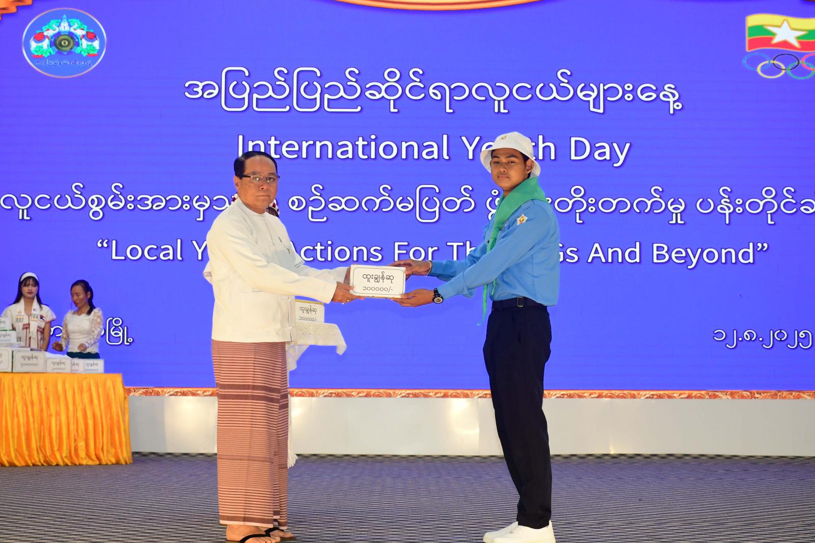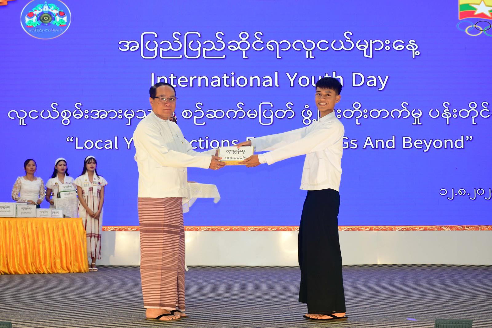 ထို့နောက် ပြည်နယ်လူမှုရေးရာဝန်ကြီးဦးစောထွန်းအောင်က ကုလသမဂ္ဂအထွေထွေ အတွင်းရေးမှူးချုပ်၏ သဝဏ်လွှာကို ဖတ်ကြားပြီး ပြည်နယ်ဝန်ကြီးချုပ်၊ ပြည်နယ် အမျိုးသမီးရေးရာအဖွဲ့နှင့် မိခင်နှင့်ကလေးစောင့်ရှောက် မှုကြီးကြပ်ရေးအဖွဲ့နာယက၊ ပြည်နယ် တရားလွှတ်တော်တရားသူကြီးချုပ်၊ ပြည်နယ်အစိုးရအဖွဲ့ဝင်များက ဗဟိုအဆင့် ပြိုင်ပွဲများတွင် ထူးချွန်လူငယ်များအား ဂုဏ်ပြုဆုပေါင်း ၅၃ ဆုကို ပေးအပ်ချီးမြှင့်ကြကာ အပြည်ပြည်ဆိုင်ရာ လူငယ်များနေ့အထိမ်းအမှတ် လူငယ်ဘက်စုံဖွံ့ဖြိုးတိုးတက်ရေးလုပ်ငန်းဆောင်ရွက်ချက်မှတ်တမ်း Video Clip ကို အတူတကွကြည့်ရှုခဲ့ကြသည်။