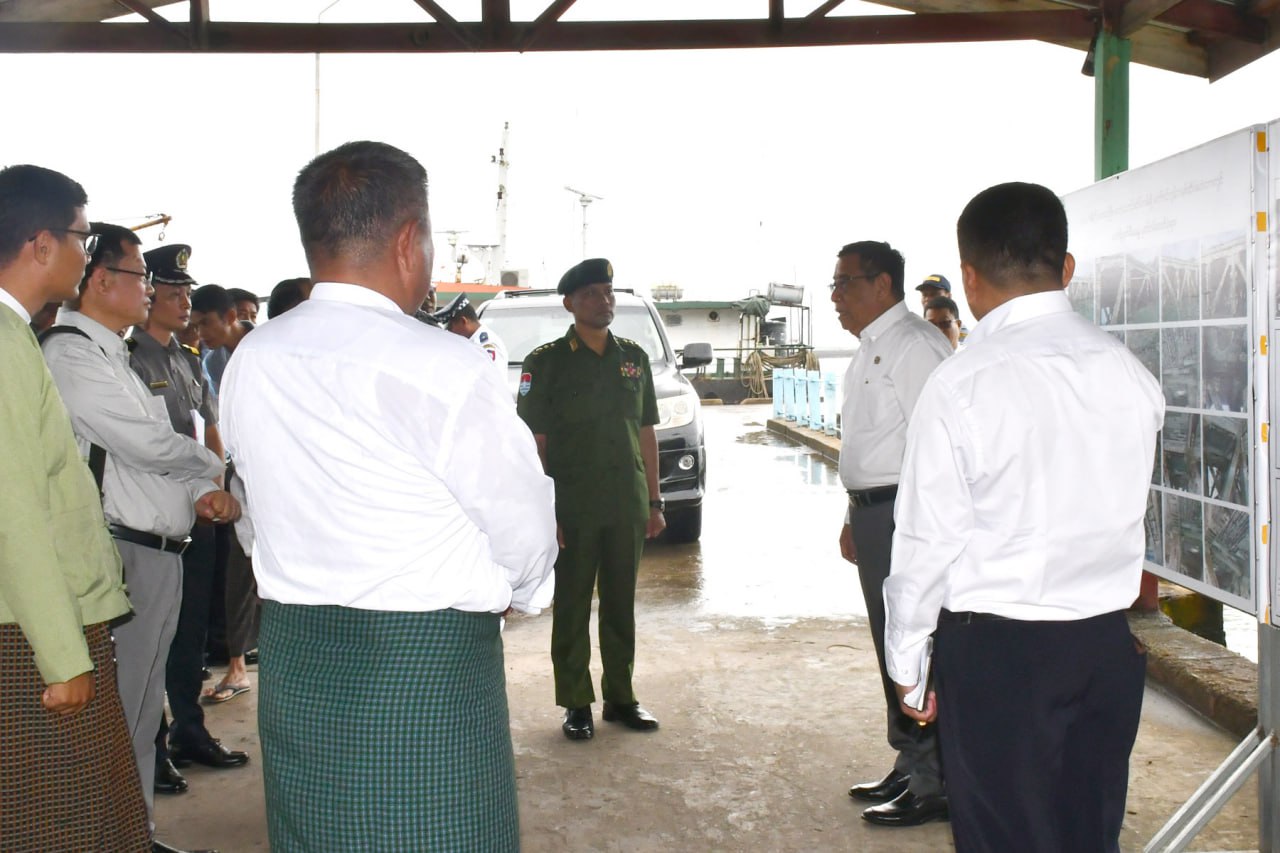 ယင်းနောက် တိုင်းဒေသကြီးဝန်ကြီးချုပ်နှင့် တာဝန်ရှိသူများသည် ကော့သောင်းမြို့၊ အေးရိပ်ငြိမ်ရပ်ကွက်၊ တော်ဝင်ဆိပ်ခံတံတားသို့ သွားရောက်၍ ကုန်ပစ္စည်းတင်သွင်း၊ တင်ပို့မှုလုပ်ငန်း ဆောင်ရွက်နေမှု အခြေအနေများအား ကွင်းဆင်းကြည့်ရှု၍ လိုအပ်သည်များ မှာကြားသည်။ ယင်းနောက် ကော့သောင်းမြို့၊ မြန်မာ့ဆိပ်ကမ်းအာဏာပိုင်ရုံး ဆိပ်ကမ်းအရာရှိမှ တော်ဝင်ဆိပ်ခံတံတား ပျက်စီးယိုယွင်းမှုအခြေအနေများ၊ (၂၀၂၅-၂၀၂၆) ဘဏ္ဍာနှစ်နှင့် (၂‌၀၂၆-၂၀၂၇) ဘဏ္ဍာနှစ်အတွင်း အကြီးစား ပြုပြင်မွမ်းမံ‌ဆောင်ရွက်မည့် လုပ်ငန်းအ‌ခြေအနေများနှင့်  ဒီဇိုင်းပုံစံများအား ရှင်းလင်းတင်ပြကြပြီး တိုင်းဒေသကြီးဝန်ကြီးချုပ်က တံတားပြင်ဆင်ရေးလုပ်ငန်းအတွက် လိုအပ်လျက်ရှိသော လျှပ်စစ်မီးနှင့် ရေချိုရရှိရေး လုပ်ငန်းကိစ္စများအား ပေါင်းစပ်ညှိနှိုင်းဆောင်ရွက်ပေးပြီး လိုအပ်သည်များ လမ်းညွှန်မှာကြားကြောင်း သိရသည်။