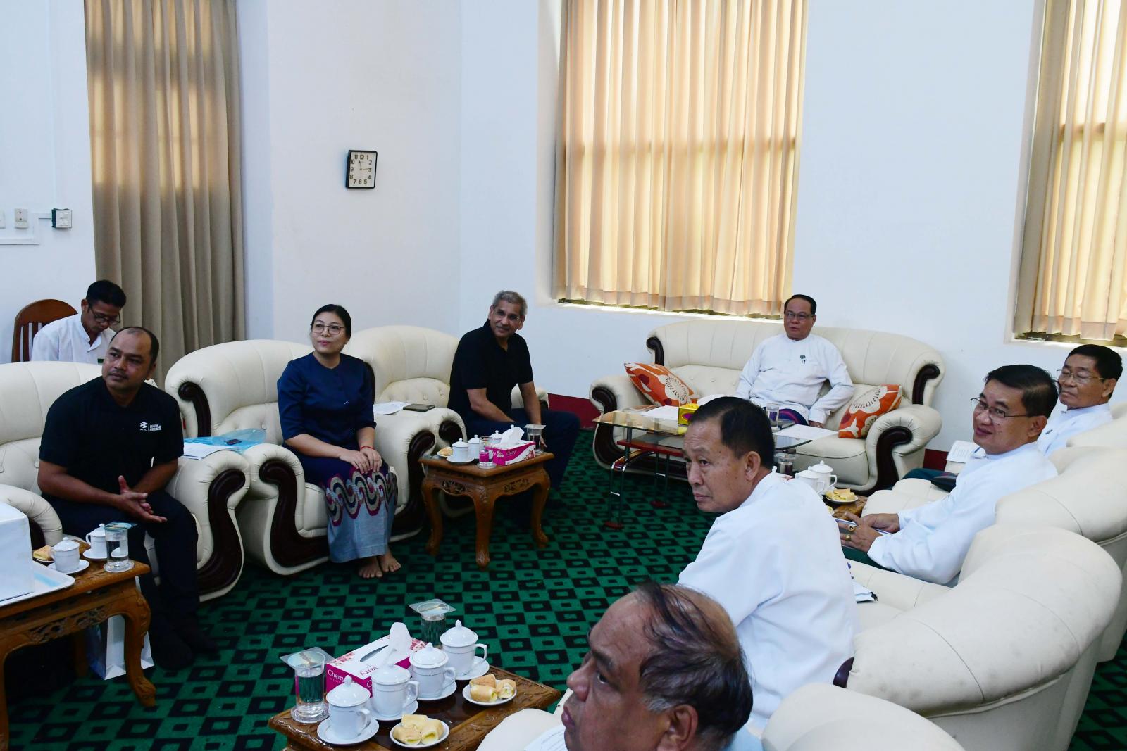 ဆက်လက်၍ ပြည်နယ်ဝန်ကြီးချုပ်၊ ပြည်နယ်အစိုးရအဖွဲ့ဝင်များနှင့်ဌာနဆိုင်ရာတာဝန်ရှိသူများသည် မြန်မာ နိုင်ငံရင်းနှီးမြှုပ်နှံမှုကော်မရှင်၏ ခွင့်ပြုချက်ဖြင့် ဘားအံစက်မှုဇုန်တွင် Bajaj အမှတ်တံဆိပ် သုံးဘီးလူစီးမော်တော် ယာဉ်များကိုတပ်ဆင်ထုတ်လုပ်ဖြန့်ဖြူးရောင်းချသော Precision Auto Engineering Co.,Ltd ၏ Mananing Director Mr Vikram Krishna နှင့်အဖွဲ့အား နံနက် ၁၁ နာရီခန့်က ပြည်နယ်အစိုးရအဖွဲ့ရုံး ဧည့်ခန်းမ(၂)၌ လက်ခံ တွေ့ဆုံသည်။