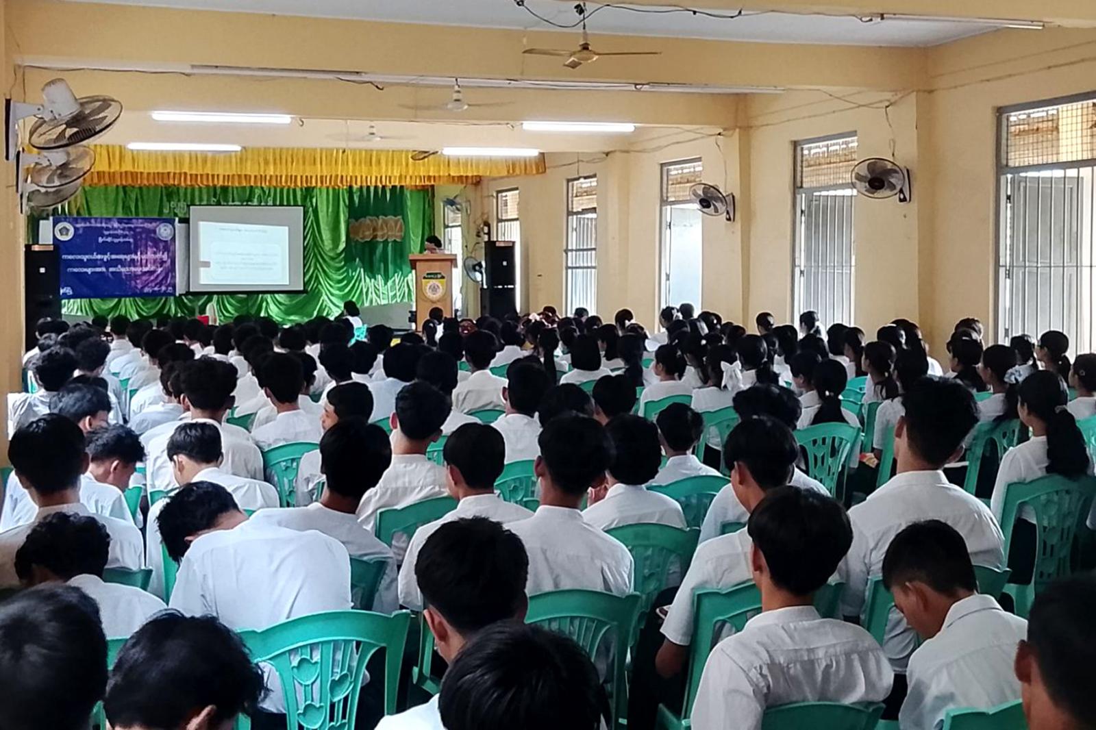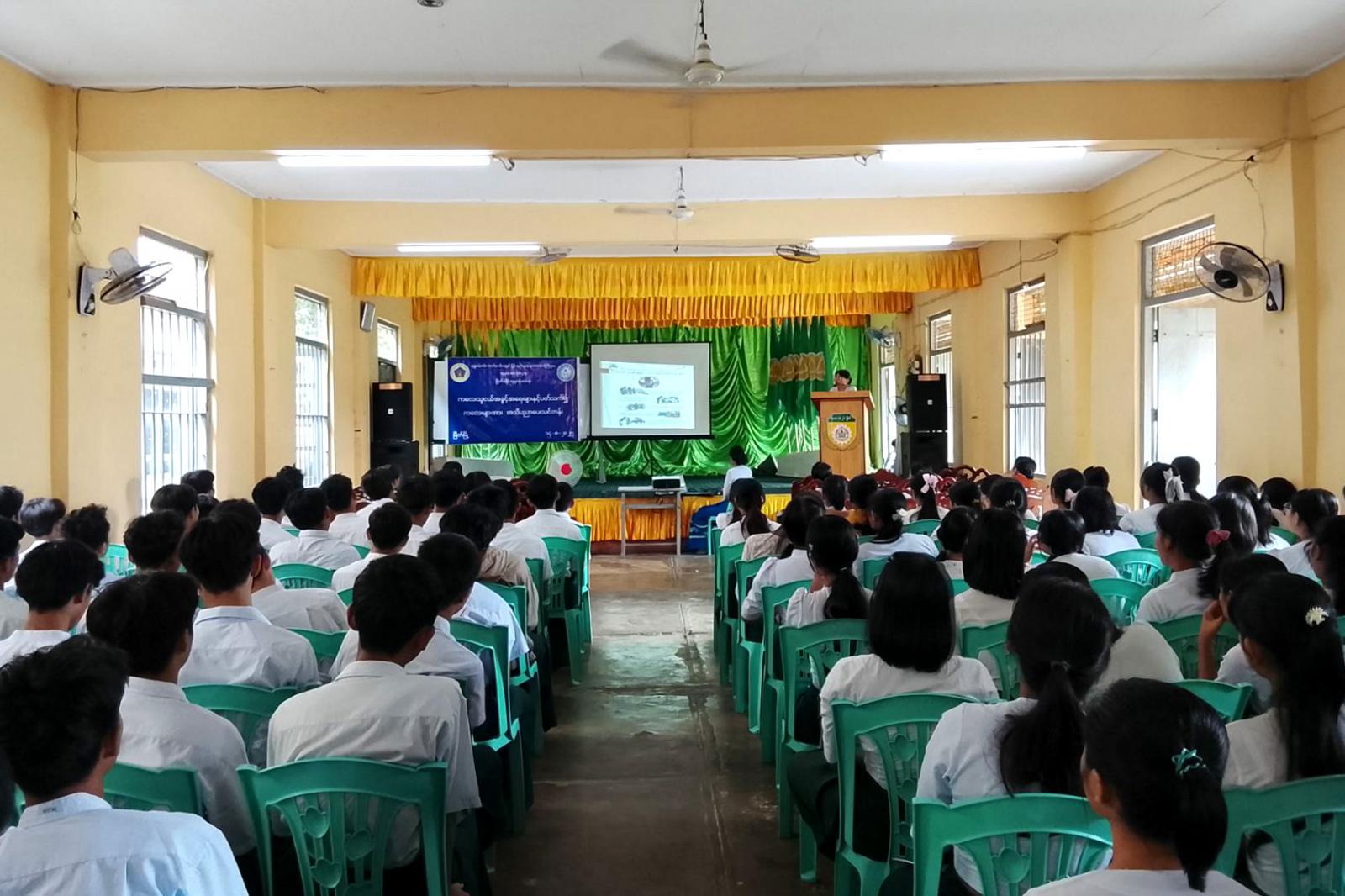 ထို့နောက် ဦးစီးအရာရှိ ဒေါ်သီသီအေးက ကျား၊ မအခြေပြုအကြမ်းဖက်မှုအကြောင်းအရာများနှင့် လိင်ပိုင်းဆိုင်ရာ အကြမ်းဖက်မှုကို ဖြစ်ပေါ်စေသည့်အကြောင်းအရာများ၊ ကြိုတင်ကာကွယ်ရေး ဆောင်ရွက်သင့်သည်များ၊  မိဘအုပ်ထိန်းသူများနှင့် မိမိကိုယ်တိုင်ဆောင်ရွက် သင့်သည်များကို အသိပညာပေးပြောကြားသည်။  ဟောပြောပွဲသို့ ဆရာ/ဆရာမများနှင့်  ကျောင်းသား/ကျောင်းသူ၁၉၈ဦး တက်ရောက်ကြကြောင်း သိရသည်။
