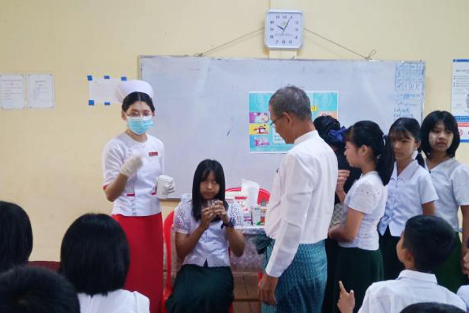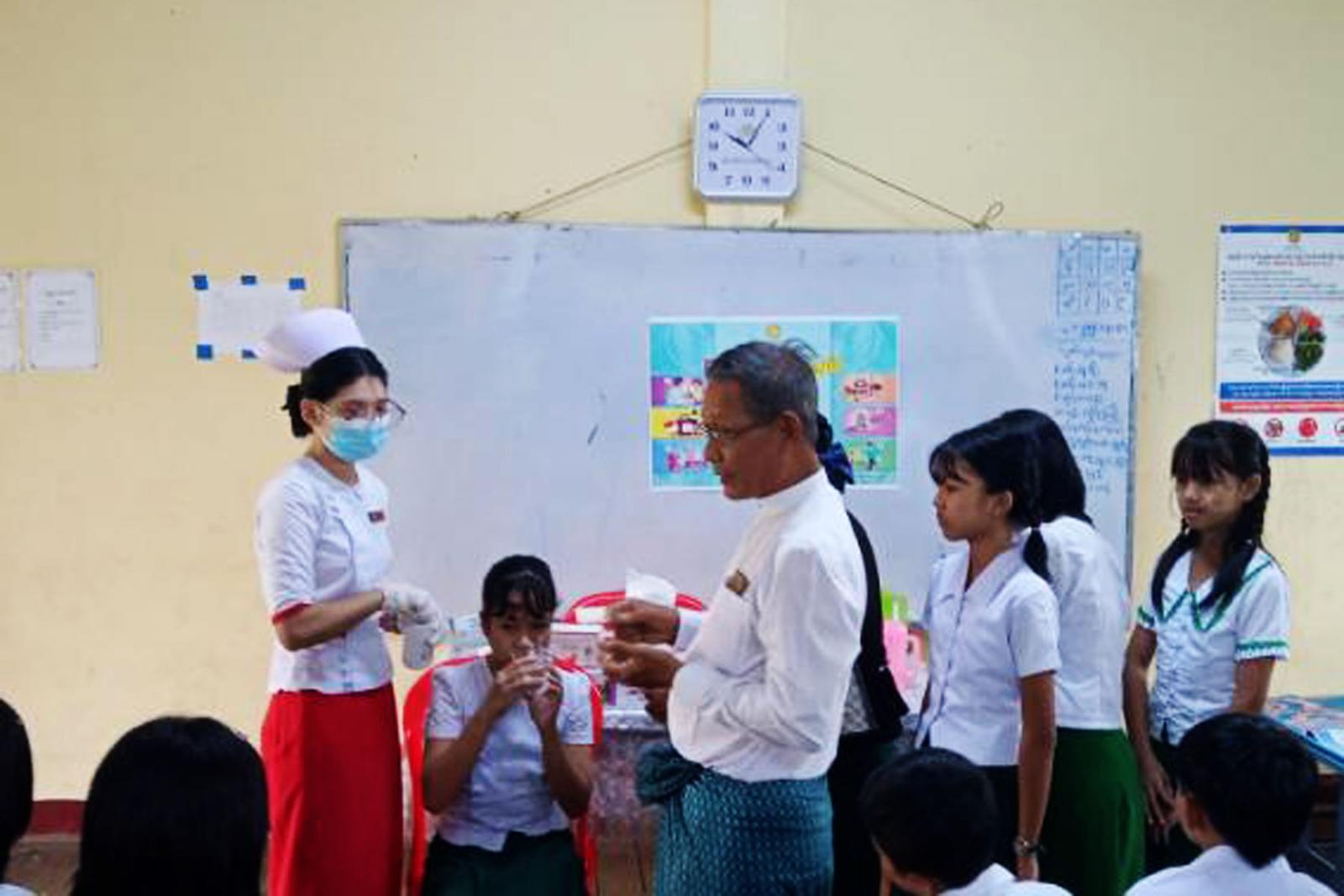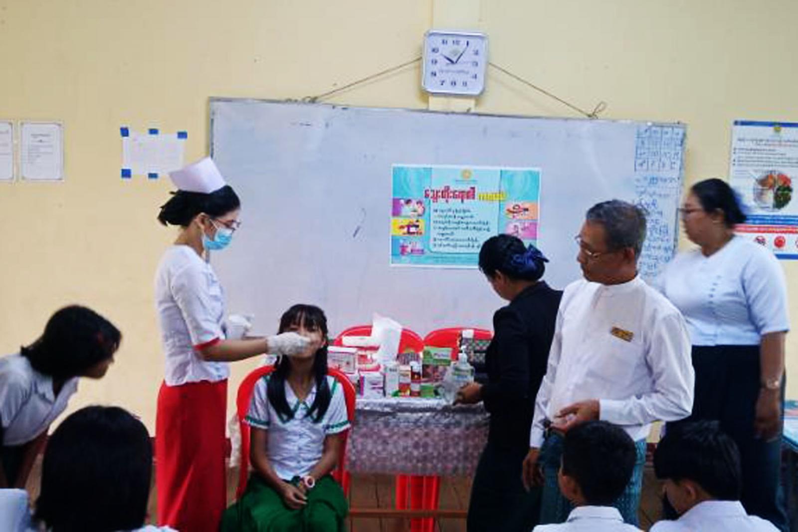ယင်းနောက် ကျန်းမာရေးဝန်ထမ်းများက မူလတန်းကျောင်းသားကျောင်းသူများအား ကျောင်းကျန်းမာရေးဆိုင်ရာများနှင့်တစ်ကိုယ်ရေးသန့်ရှင်းရေး၊ သံချဆေးကျွေးခြင်းနှင့်ပတ်သက်သည်များကို အသိပညာပေးပြောကြားပြီး ကျောင်းသား၊ ကျောင်းသူများအား သံချဆေးတိုက်ကျွေးခဲ့ကြကြောင်း သိရသည်။