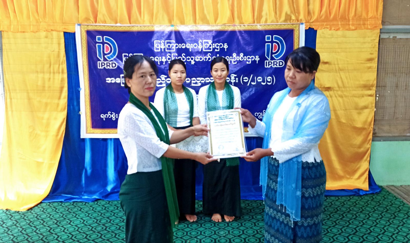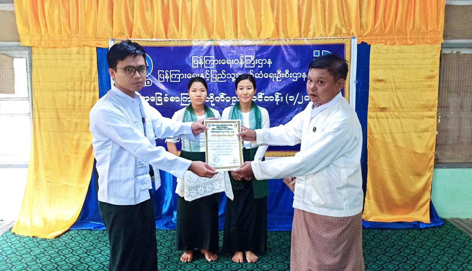 ထို့နောက် သင်တန်းသား၊ သင်တန်းသူများအား သင်တန်းဆင်းလက်မှတ်ပေးအပ်ပြီး သင်တန်းနည်းပြများကို ဂုဏ်ပြုချီးမြှင့်ငွေပေးအပ်၍ သင်တန်းသားတစ်ဦးက ကျေးဇူးတင်စကားပြောကြားသည်။