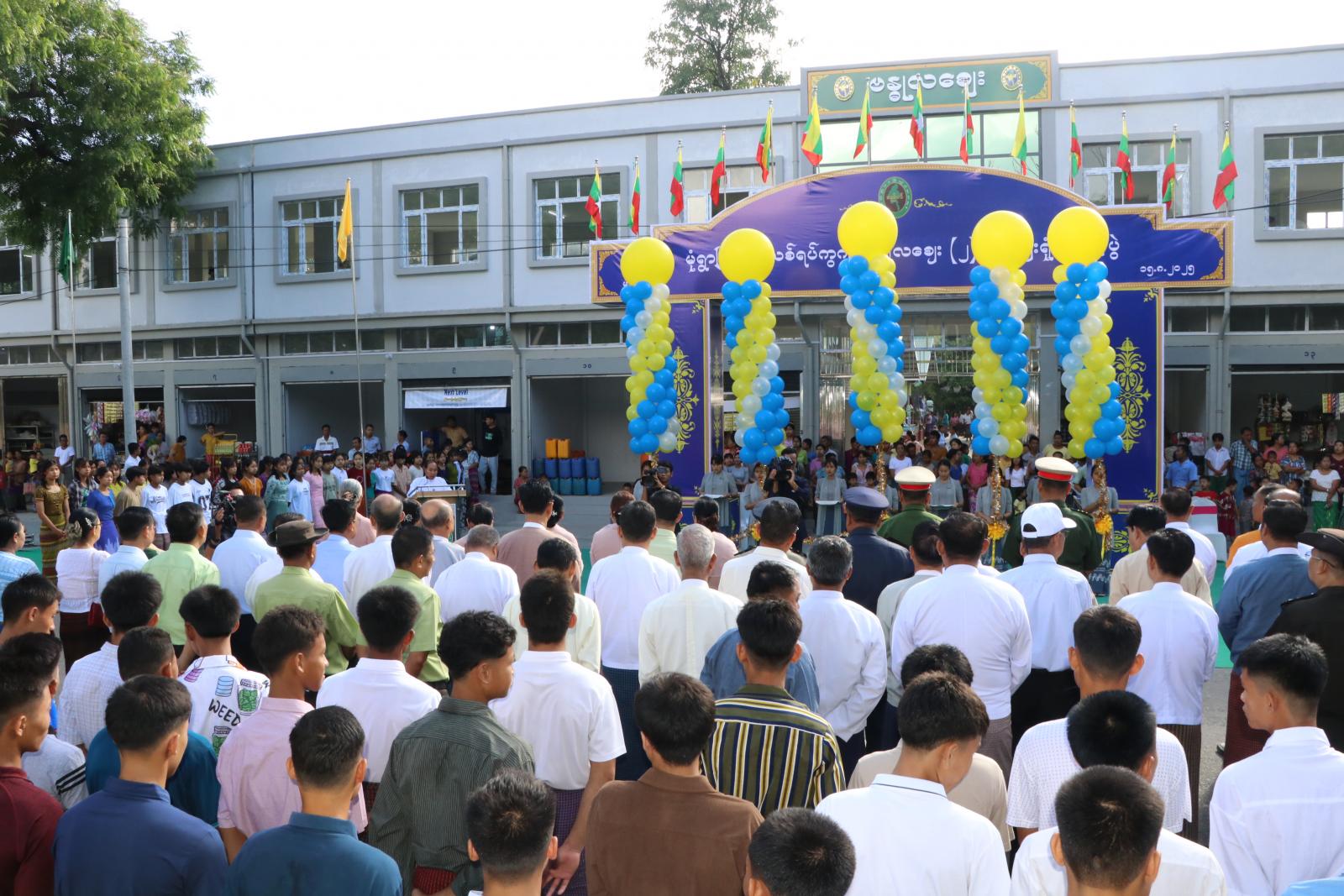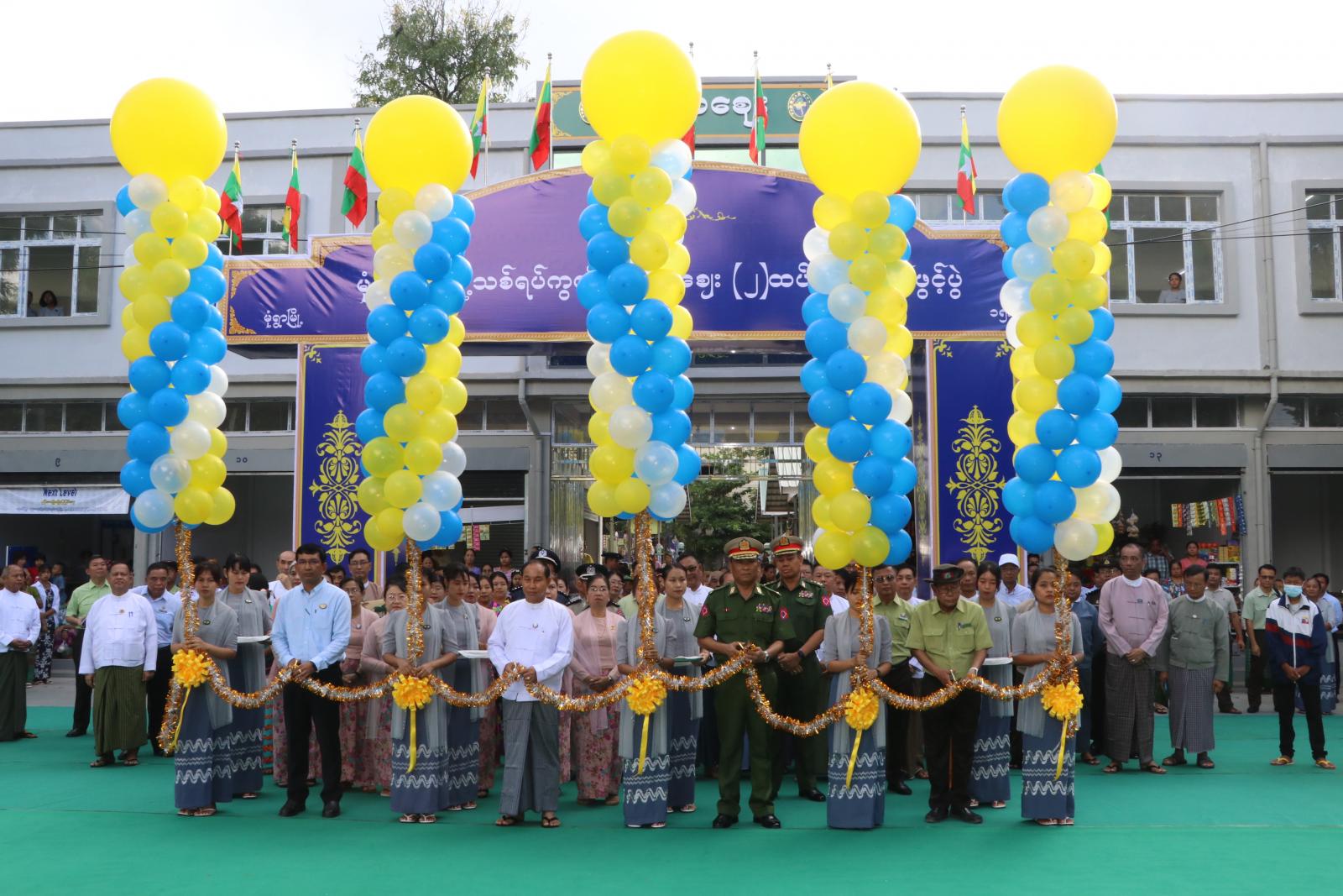 ဆက်လက်၍ တိုင်းဒေသကြီးဝန်ကြီးချုပ် ဦးမြတ်ကျော်၊ အနောက်မြောက်တိုင်းစစ်ဌာနချုပ် တိုင်းမှူး ဗိုလ်မှူးချုပ် မျိုးမင်းထွေး၊ တိုင်းဒေသကြီးစည်ပင်သာယာရေးအဖွဲ့ ညွှန်ကြားရေးမှူး ဦးသစ်ထူးမြင့်နှင့် မုံရွာခရိုင် စီမံခန့်ခွဲရေးနှင့်အုပ်ချုပ်ရေးကော်မတီဥက္ကဋ္ဌ ဦးကိုကိုလွင်တို့က ဗန္ဓုလဈေး ၂ ထပ်ဈေးရုံ အဆောက်အဦသစ်အား ဖဲကြိုးဖြတ်ဖွင့်လှစ် ပေးကြပြီး တိုင်းဒေသကြီးအစိုးရအဖွဲ့ဝင်များက ဗန္ဓုလဈေး ၂ ထပ်ဈေးရုံ အဆောက်အဦသစ် ဖွင့်ပွဲအခမ်းအနားတွင် ပါဝင်ကူညီခဲ့ကြသည့် မုံရွာမြို့၊ အမှတ်(၂) အခြေခံပညာနှင့် စိုက်ပျိုးမွေးမြူရေးအထက်တန်းကျောင်း(အလုံ)မှ ဘင်ခရာ/ပန်းပွားအဖွဲ့များအား ဂုဏ်ပြုချီးမြှင့်ငွေများ ပေးအပ်ချီးမြှင့်ကြပြီး အဆိုပါဈေးရုံ အဆောက်အဦသစ်ရှေ့တွင် စုပေါင်းမှတ်တမ်းတင် ဓါတ်ပုံရိုက်ကူးခဲ့ကြသည်။