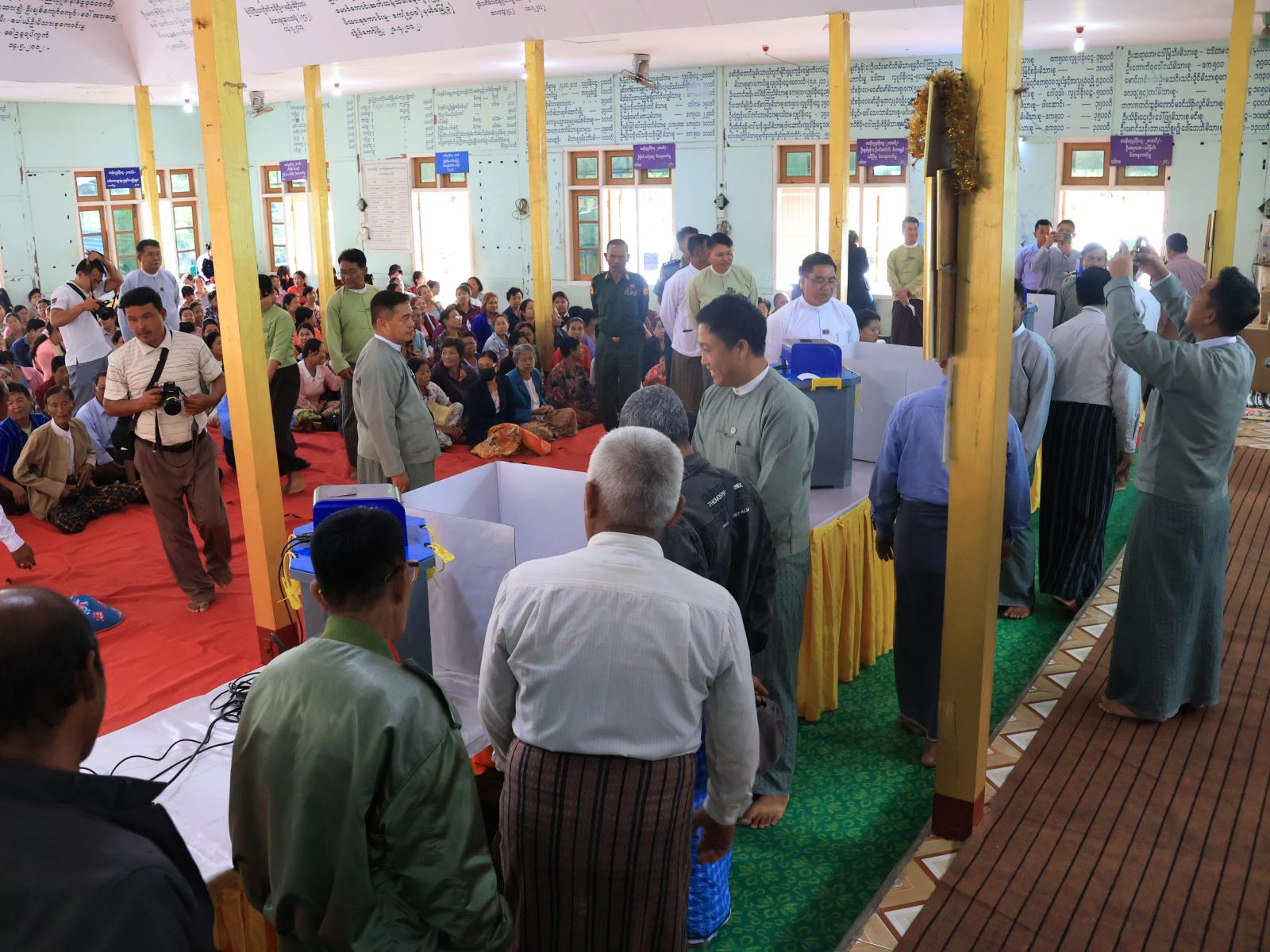 ပြည်နယ်ရွေးကောက်ပွဲကော်မရှင်အဖွဲ့ခွဲရုံး၊ ပြည်နယ်ရွေးကောက်ပွဲအရာရှိက မြန်မာအီလက်ထရောနစ်မဲပေးစက်ဖွဲ့စည်းတည်ဆောက်ပုံ၊ အသုံးပြုပုံအဆင့်ဆင့်တို့အား ရှင်းလင်းတင်ပြသည်။ ထို့နောက်ပြည်နယ်ဝန်ကြီးချုပ်နှင့်တာဝန်ရှိသူများသည် ပြည်နယ်ရွေးကောက်ပွဲကော်မရှင်အဖွဲ့ခွဲရုံးဝန်ထမ်းများက မြန်မာအီလက်ထရောနစ်မဲပေးစက်ဖြင့်စမ်းသပ်ဆန္ဒမဲပေးရန် ကူညီဆောင်ရွက်ပေးနေမှုများနှင့် ပြည်သူများကစိတ်ပါဝင်စားစွာ လက်တွေ့ဆန္ဒမဲပေးနေမှုများကိုကြည့်ရှုအားပေးပြီး တက်ရောက်လာသူများအား ရင်းရင်းနှီးနှီးနှုတ်ဆက်စကားများ ပြောကြားခဲ့သည်။