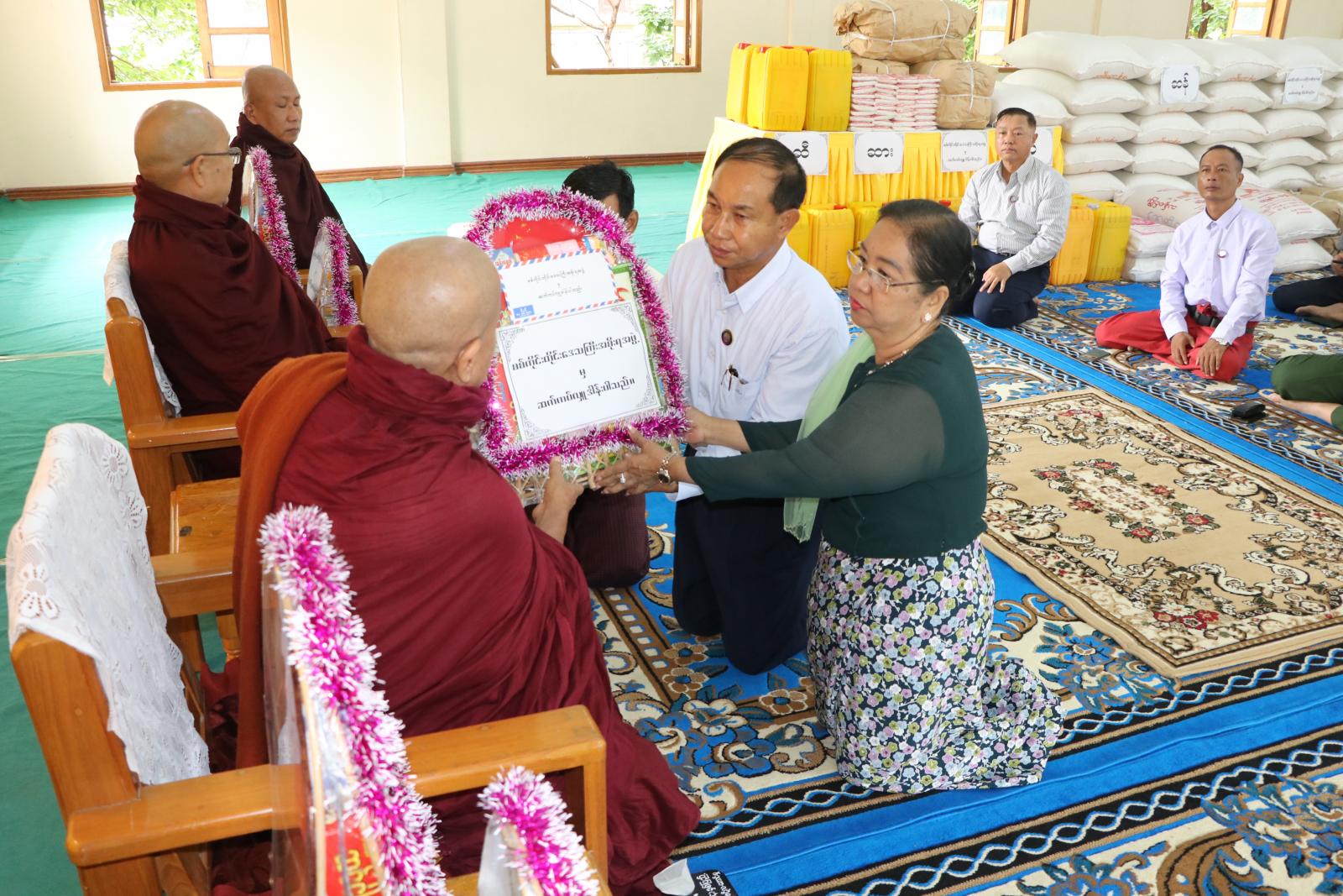 ယင်းနောက် ဆရာတော်ကြီးနှင့် ပင့်သံဃာဆရာတော်ကြီးများထံ ဆွမ်းဆန်၊ ဆီ၊ ဆား၊ ပဲ၊ ဆေးနှင့် လှူဖွယ်ဝထ္တုပစ္စည်းများ ဆက်ကပ်လှူဒါန်းခဲ့ကြပြီး တိုင်းဒေသကြီးဝန်ကြီးချုပ်က သာသနာရေးဆိုင်ရာများ လျှောက်ထားခဲ့ကြသည်။