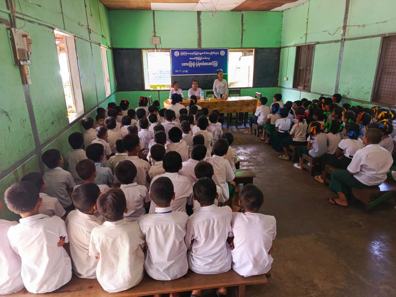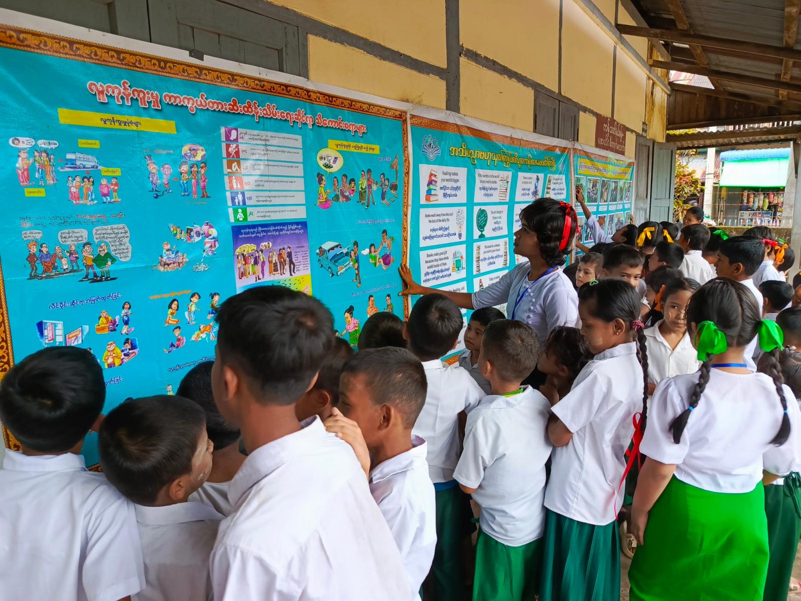 အဆိုပါ အသိပညာပေးလုပ်ငန်းတွင် ပြန်ကြားရေးနှင့်ပြည်သူ့ဆက်ဆံရေးဦးစီးဌာနမှ ကျောင်းသူ၊ ကျောင်းသားများ ဖတ်ရှုလေ့လာနိုင်ရန် ကလေးကဗျာများ၊ ရုပ်ပြပုံပြင်များ၊ စာစောင်များ စသည့် ကလေးများအသိပညာတိုးပွားရေး စာအုပ်စာပေများနှင့် စာဖတ်ရှိန်မြှင့်တင်ရေး၊ ကလေးအလုပ်သမားပပျောက်ရေး စသည့် အသိပညာပေး နံရံကပ်စာစောင်များကို ခင်းကျင်းပြသရာ ကျောင်းသား၊ ကျောင်းသူများမှ စိတ်ပါ၀င်စားစွာ ကြည့်ရှုလေ့လာခဲ့ကြောင်း သိရသည်။