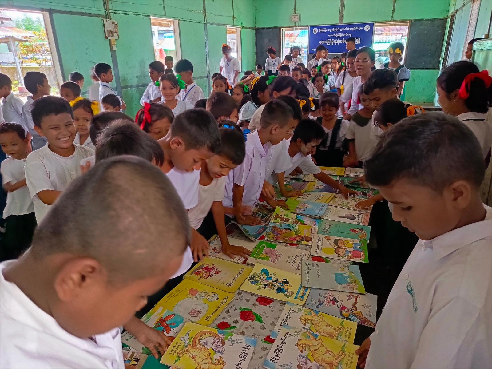 ယင်းနောက် ကျောင်းသား၊ ကျောင်းသူများက ပြန်ကြားရေးနှင့်ပြည်သူ့ဆက်ဆံရေးဦးစီးဌာနမှ ခင်းကျင်းပြသထားသည့် စာအုပ်စာစောင်များကို စိတ်ကြိုက်ရွေးချယ်ဖတ်ရှုကြကာ စာဖတ်စွမ်းရည်ယှဉ်ပြိုင်ခြင်း၊ ပုံပြင်ပြော၊ ကဗျာရွတ်ဆိုယှဉ်ပြိုင်ခြင်းများ ပြုလုပ်ခဲ့ကြသည်။