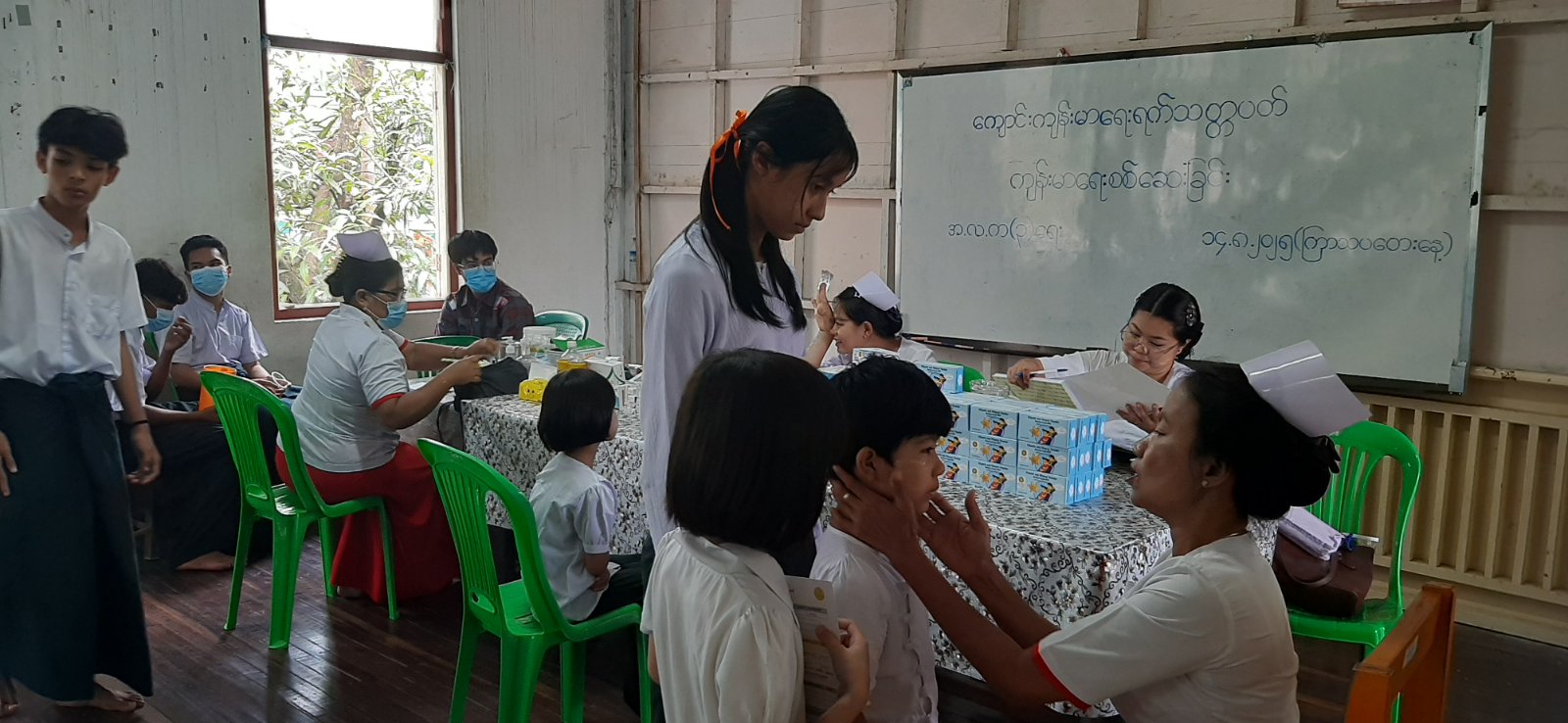 ဦးစွာ ကျောင်းကျန်းမာရေးရက်သတ္တပတ် ကျန်းမာရေးစစ်ဆေးပေးခြင်းကို ရေးခရိုင်၊ ကုသရေးဦးစီးဌာန သွားနှင့်ခံတွင်းကုသရေးဦးစီးဌာနမှ ဒေါက်တာမင်းအောင်မာန်နှင့် ကျန်းမာရေးဝန်ထမ်း ဆရာမများက KG တန်းမှ Grade-3 ထိ သွားနှင့်ခံတွင်းရောဂါစစ်ဆေးပေးပြီး ကျန်ရှိသည့်ကလေးငယ်များအား တစ်ကိုယ်ရည်သန့်ရှင်းရေးအတွက် ခြေသည်း၊ လက်သည်းစစ်ဆေးခြင်းနှင့် အထွေထွေကျန်းမာရေးစစ်ဆေးခြင်းတို့ကို ဆောင်ရွက်ပေးပြီး လိုအပ်သည့်ဆေးများပေးခြင်းနှင့် အားဆေးများ တိုက်ကျွေးခြင်း ဆောင်ရွက်သည်။