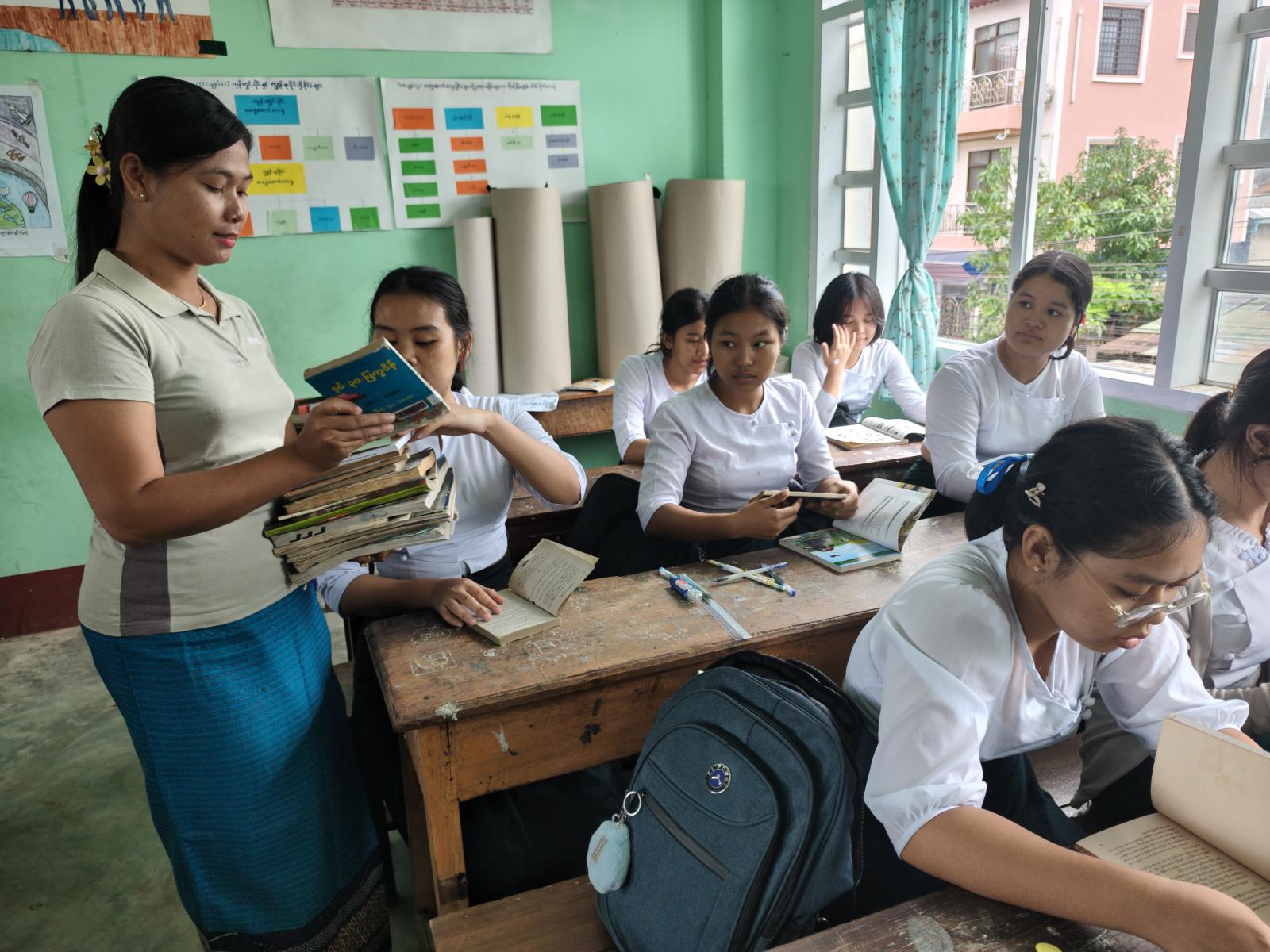မြဝတီခရိုင်၊ ပြန်ကြားရေးနှင့်ပြည်သူ့ဆက်ဆံရေးဦးစီးဌာနမှ ကျောင်းသားကျောင်းသူများ အသိပညာဗဟုသုတ တိုးပွားစေရေးနှင့် စာဖတ်ရှိန်မြှင့်တင်ရေးအတွက် အမှတ်(၃)၊ အခြေခံပညာအထက်တန်းကျောင်း၌ ဩဂုတ် ၁၈ ရက် နံနက် (၁၀)နာရီက နယ်လှည့်စာကြည့်တိုက်ကွင်းဆင်းဆောင်ရွက်ရာ Grade – 9 ကျောင်းသားကျောင်းသူ (၆၈)ဦး လေ့လာဖတ်ရှုခဲ့ကြသည်။