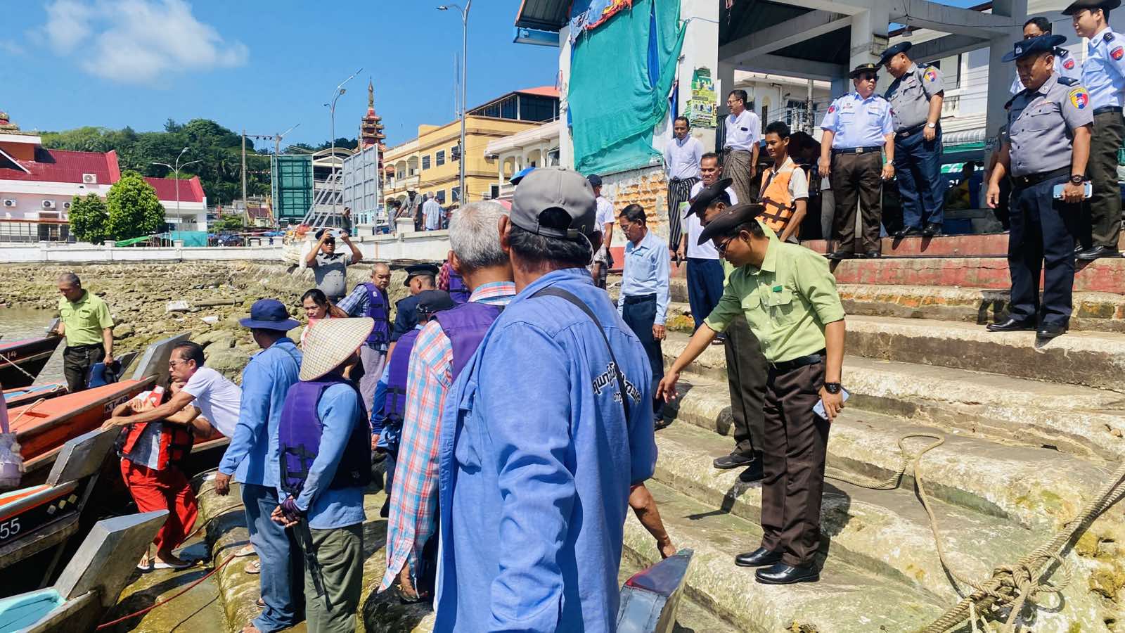 တနင်္သာရီတိုင်းဒေသကြီးကော့သောင်းခရိုင်ကော့သောင်းမြို့တွင် ပင်လယ်ပြင်ခရီးသွားသူများအနေဖြင့် ဘေးအန္တရာယ်ကင်းရှင်း၍ လုံခြုံစိတ်ချစွာ ခရီးသွားလာနိုင်ရေးအတွက် အသက်ကယ်အင်္ကျီဝတ်ဆင်စေရေးကြပ်မတ်ခြင်းကို ယနေ့နံနက်ပိုင်းက ကော့သောင်းကမ်းနားရှိ လှေဆိပ်တွင် ဆောင်ရွက်သည်။