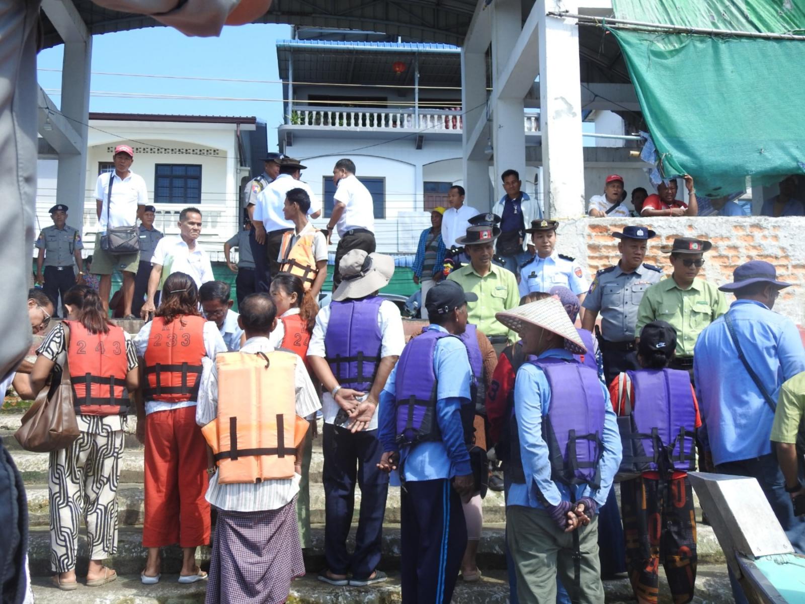 ထိုသို့ဆောင်ရွက်ရာ ခရိုင်စီမံခန့်ခွဲရေးနှင့်အုပ်ချုပ်ရေးကော်မတီဥက္ကဋ္ဌ ဦးရဲမြတ်တင့်၊ ကော်မတီအဖွဲ့ဝင်များ၊မြို့နယ်ငါးလုပ်ငန်းဦးစီးဌာန၊ ပို့ဆောင်ရေးနှင့်စီမံကိန်းဦးစီးဌာန၊ ရေကြောင်းပို့ဆောင်ရေးညွှန်ကြားမှုဦးစီးဌာန၊ ရေယာဉ်ငယ်အသင်းမှ ဝာာဝန်ရှိသူများက ပင်လယ်ရေကြောင်းဖြင့် ကော့သောင်းမြို့မှ ထိုင်းနိုင်ငံရနောင်းမြို့သို့ခရီးသွားလာကြမည့် ပြည်သူများအား အသက်ကယ်အင်္ကျီ စနစ်တကျဝတ်ဆင်စေရေး ကြပ်မတ်စစ်ဆေးခဲ့ကြောင်း သိရသည်။