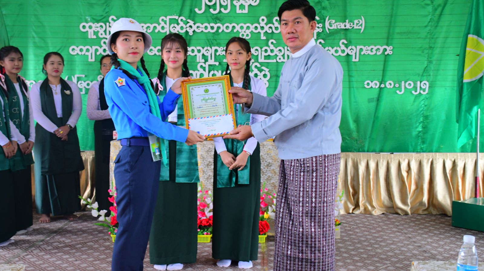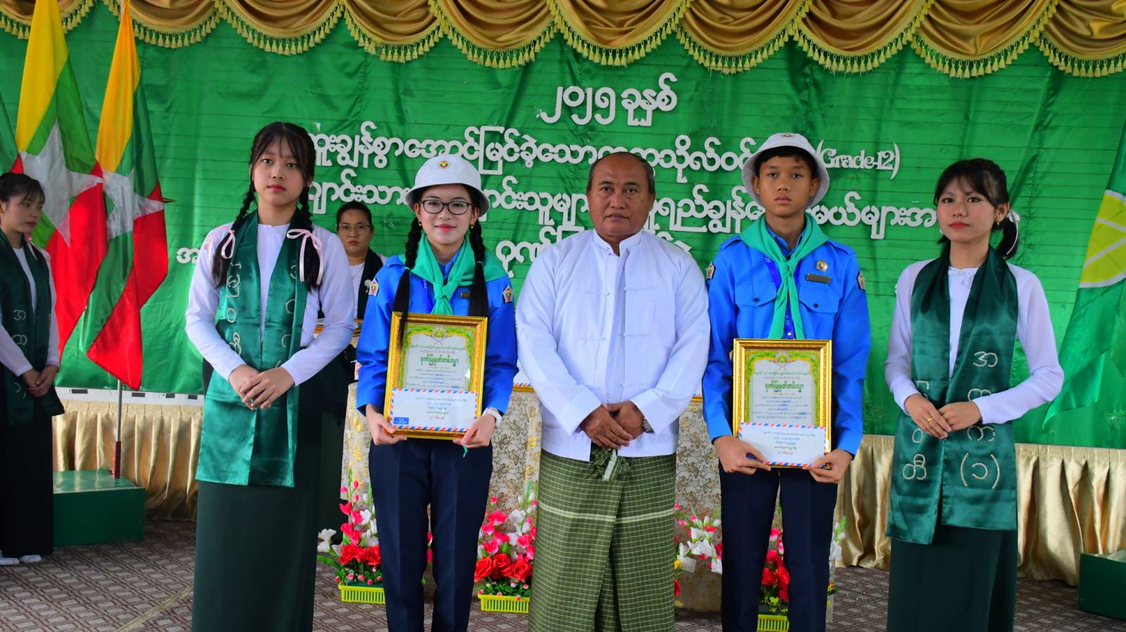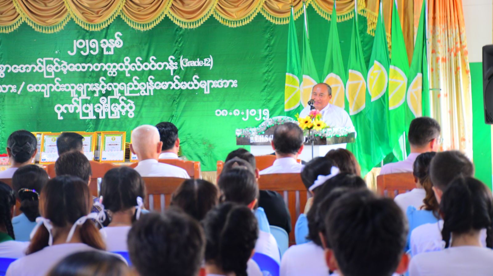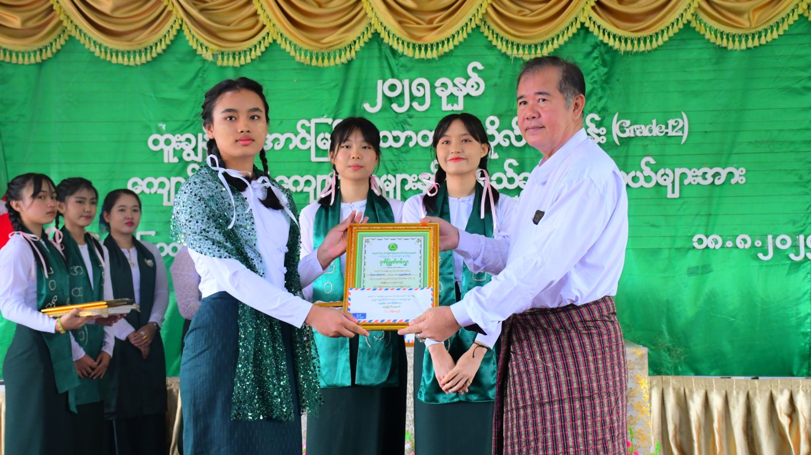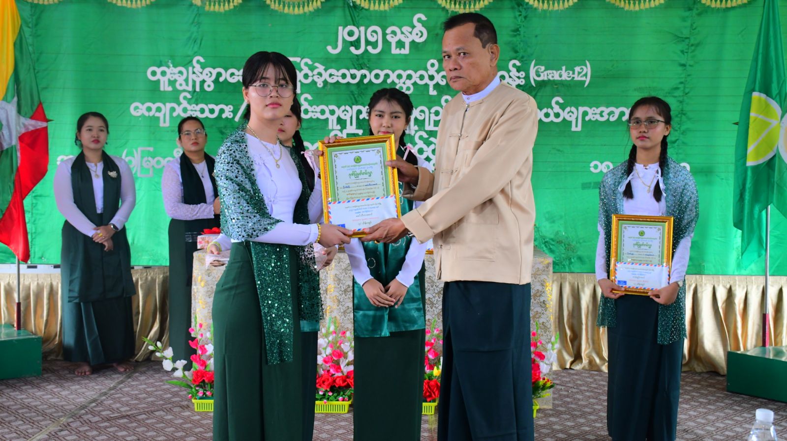 ဆက်လက်ပြီး အမှတ်(၁)အခြေခံပညာအထက်တန်းကျောင်းတွင် ထူးချွန်စွာအောင်မြင်ခဲ့ကြသည့်၂၀၂၄-၂၀၂၅ ပညာသင်နှစ် လူရည်ချွန်ဆုရ (Grade-9-10-12)တို့ မှ ကျောင်းသား၊ ကျောင်းသူ(၆)ဦး၊ သုံးဘာသာဂုဏ်ထူးရှင်နှစ်ဦး၊ ရူပဗေဒဘာသာရပ်၊ ဇီဝဗေဒဘာသာရပ်များဖြင့် ထူးချွန်စွာအောင်မြင်သည့် နှစ်ဘာသာဂုဏ်ထူးရှင်တစ်ဦးတို့နှင့် တက္ကသိုလ်ဝင်စာမေးပွဲအောင်မြင်ခဲ့ကြသည့် ကျောင်းသား/ကျောင်းသူ ၂၉ ဦးတို့ကို ဂုဏ်ပြုဆုငွေများ ချီးမြှင့်ခဲ့ကြပြီး လူရည်ချွန်(Grade-9)ကျောင်းသူ မဆောင်းနှင်းရွှေစင်က သင်ကြားပြသပေးခဲ့ကြသော မိဘဆရာများအား ကျေးဇူးတင်စကား ပြောကြားခဲ့ကြောင်း သိရှိရသည်။