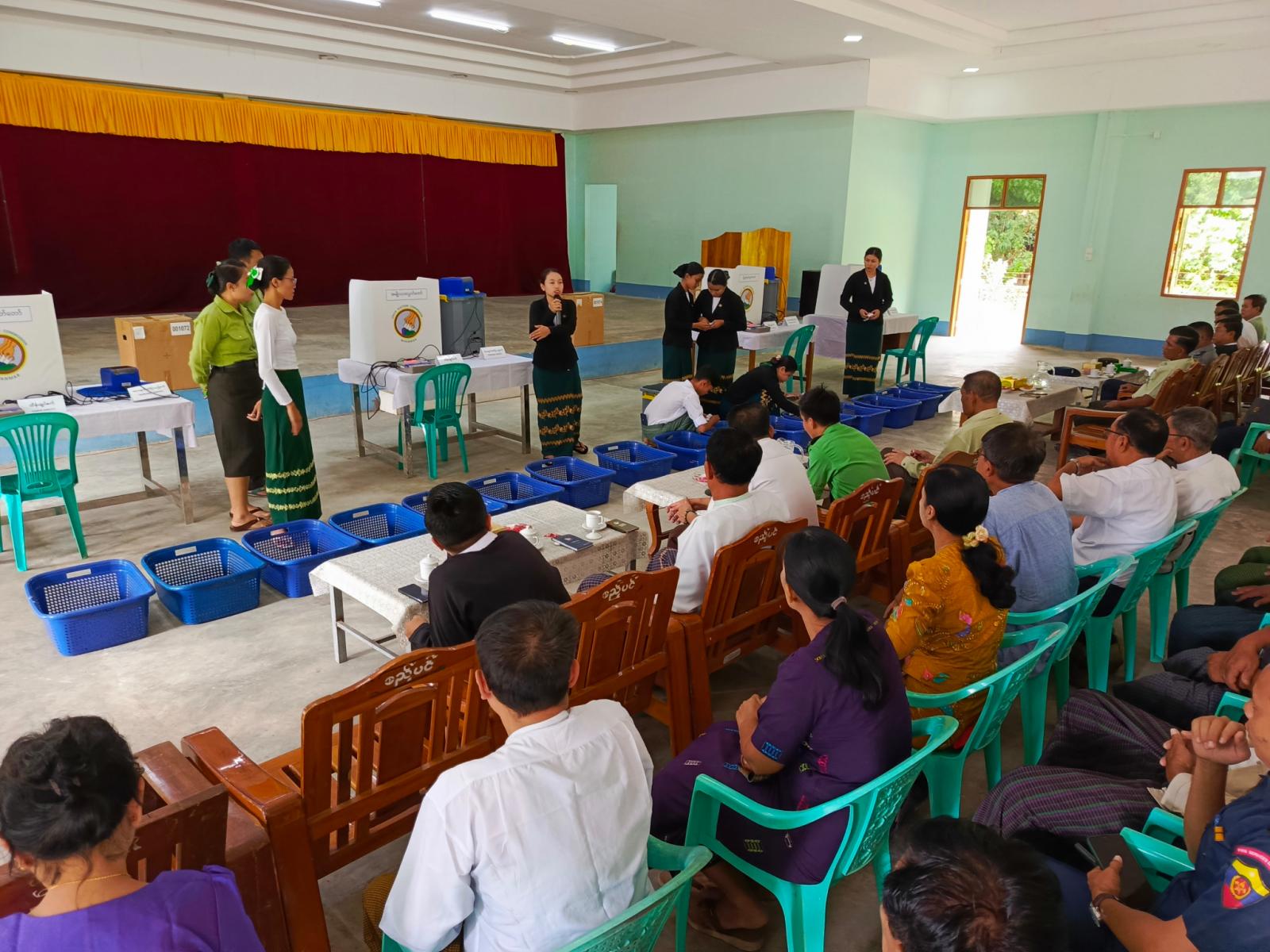 မွန်ပြည်နယ်၊ သထုံမြို့နယ်၌ မြန်မာအီလက်ထရောနစ်မဲပေးစက် (MEVM) အသုံးပြုခြင်းဆိုင်ရာ အသိပညာပေးခြင်းနှင့် လက်တွေ့စမ်းသပ်မဲပေးသရုပ်ပြသခြင်းကို ယမန်နေ့မွန်းလွဲပိုင်းက လိပ်အင်းရပ်ကွက်ရှိ မြို့နယ်အထွေထွေအုပ်ချုပ်ရေးဦးစီးဌာနခန်းမ၌ ကျင်းပပြုလုပ်ရာ သထုံခရိုင် စီမံခန့်ခွဲရေးနှင့်အုပ်ချုပ်ရေးကော်မတီဥက္ကဋ္ဌ ဦးစိုးအောင်၊ မြို့နယ်စီမံခန့်ခွဲရေးနှင့်အုပ်ချုပ်ရေးကော်မတီဥက္ကဋ္ဌ ဦးဇော်မိုးစိုးနှင့် တာဝန်ရှိသူများ တက်ရောက်ခဲ့ကြသည်။