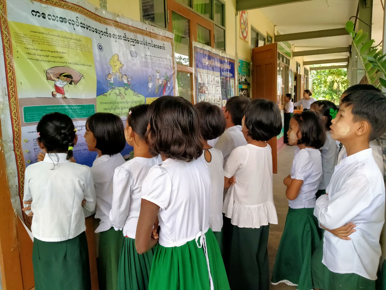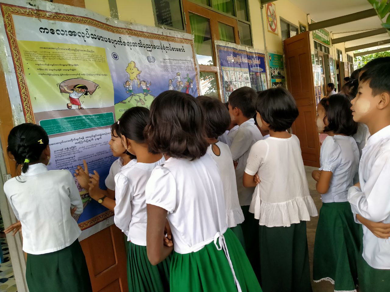 ထို့နောက် ကျောင်းအုပ်ဆရာမကြီးက ကျေးဇူးတင်စကားပြောကြားပြီး ပြန်ကြားရေးနှင့်ပြည်သူ့ဆက်ဆံရေးဦးစီးဌာနမှ ကျောင်းသား၊ ကျောင်းသူများ ဖတ်ရှုလေ့လာနိုင်ရန် ရုပ်ပြပုံပြင်များ၊ စာစောင်များစသည့် ကလေးများ အသိပညာတိုးပွားရေး စာအုပ်စာပေများ၊ စာဖတ်ရှိန်မြှင့်တင်ရေးတို့နှင့် ပတ်သက်သည့် ဆောင်းပါး၊ ကဗျာ၊ ကာတွန်း သိမှတ်ဖွယ်ရာများ စသည့်အသိပညာပေးနံရံကပ်စာစောင်များ ဓာတ်ပုံများကို ခင်းကျင်းပြသခဲ့ရာ ကျောင်းသား၊ ကျောင်းသူများက စိတ်ပါ၀င်စားစွာ ကြည့်ရှုလေ့လာခဲ့ကြောင်း သိရသည်။