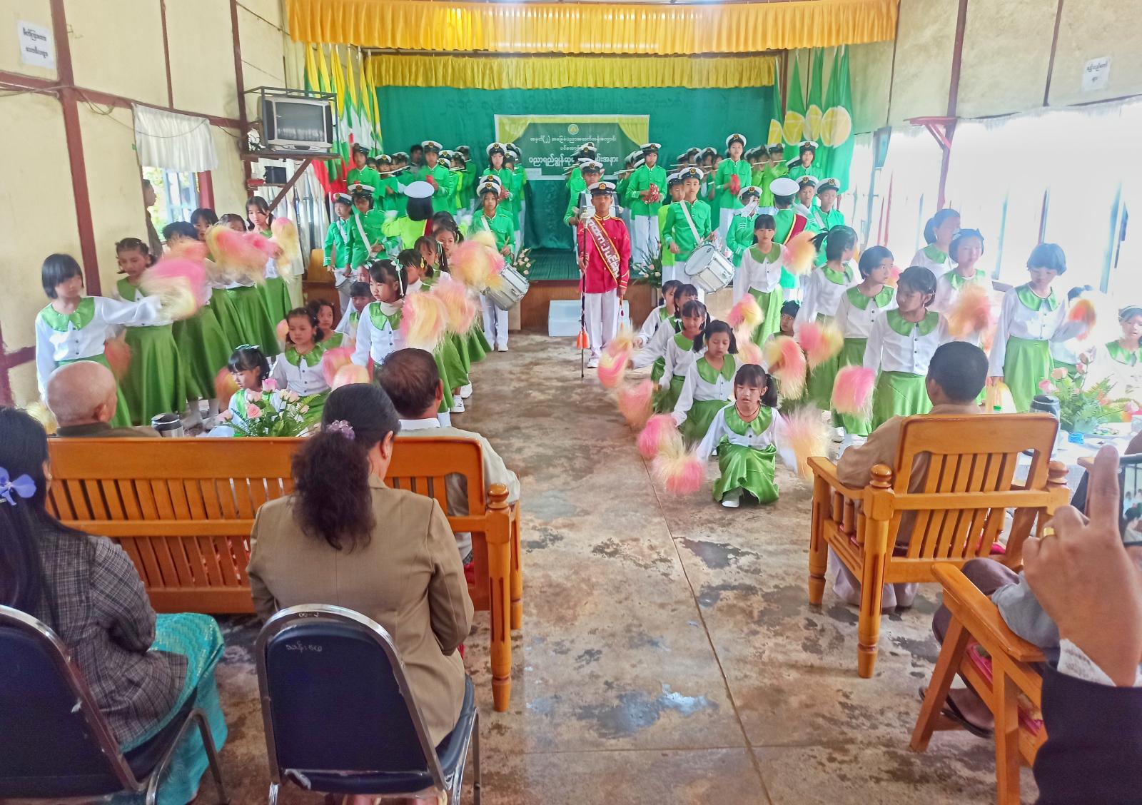 ဦးစွာ ကျောင်းသား၊ ကျောင်းသူများ "ဒို့ကျောင်း ဒို့ဝန်းကျင်" တေးသီချင်းနှင့် ဘင်ခရာ၊ ပန်းဖွားအဖွဲ့တို့က ဖျော်တင်တင်ဆက်ပေးပြီး၊ မြို့နယ်ပညာရေးမှူး ဦးတင်ငွေက အဖွင့်အမှာစကားနှင့် ကျောင်းအကျိုးတော်ဆောင်အဖွဲ့ ဦးစိုင်းနော်ခမ်းက ကျောင်းဖွံ့ဖြိုးတိုးတက်မှုဆိုင်ရာများ၊ ကျောင်းအုပ်ဆရာမကြီး ဒေါ်ပိုခမ်းက ကျောင်းနှင့်ပတ်သက်သည့် ဆောင်ရွက်ချက်များကို အသီးသီးပြောကြားကြသည်။