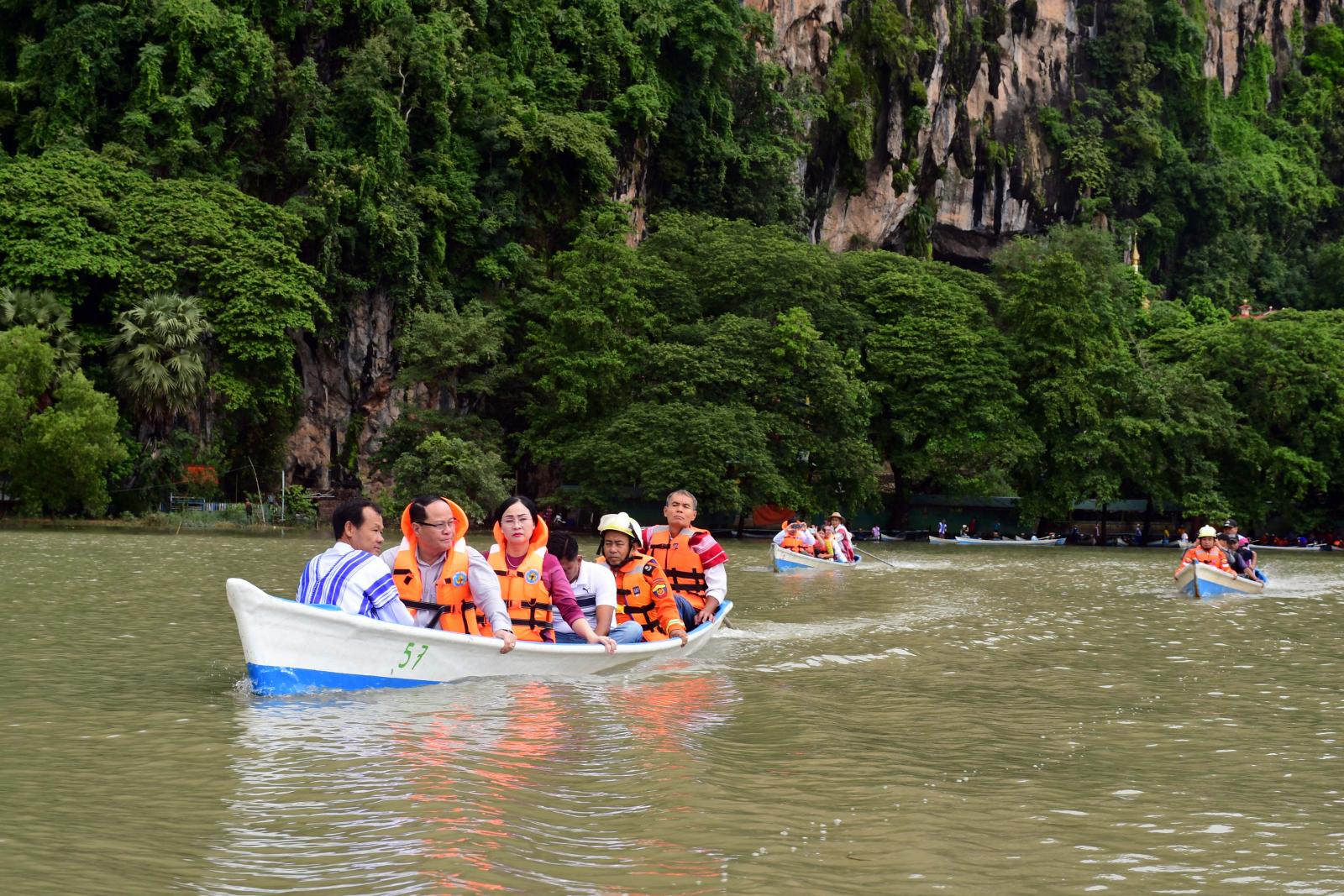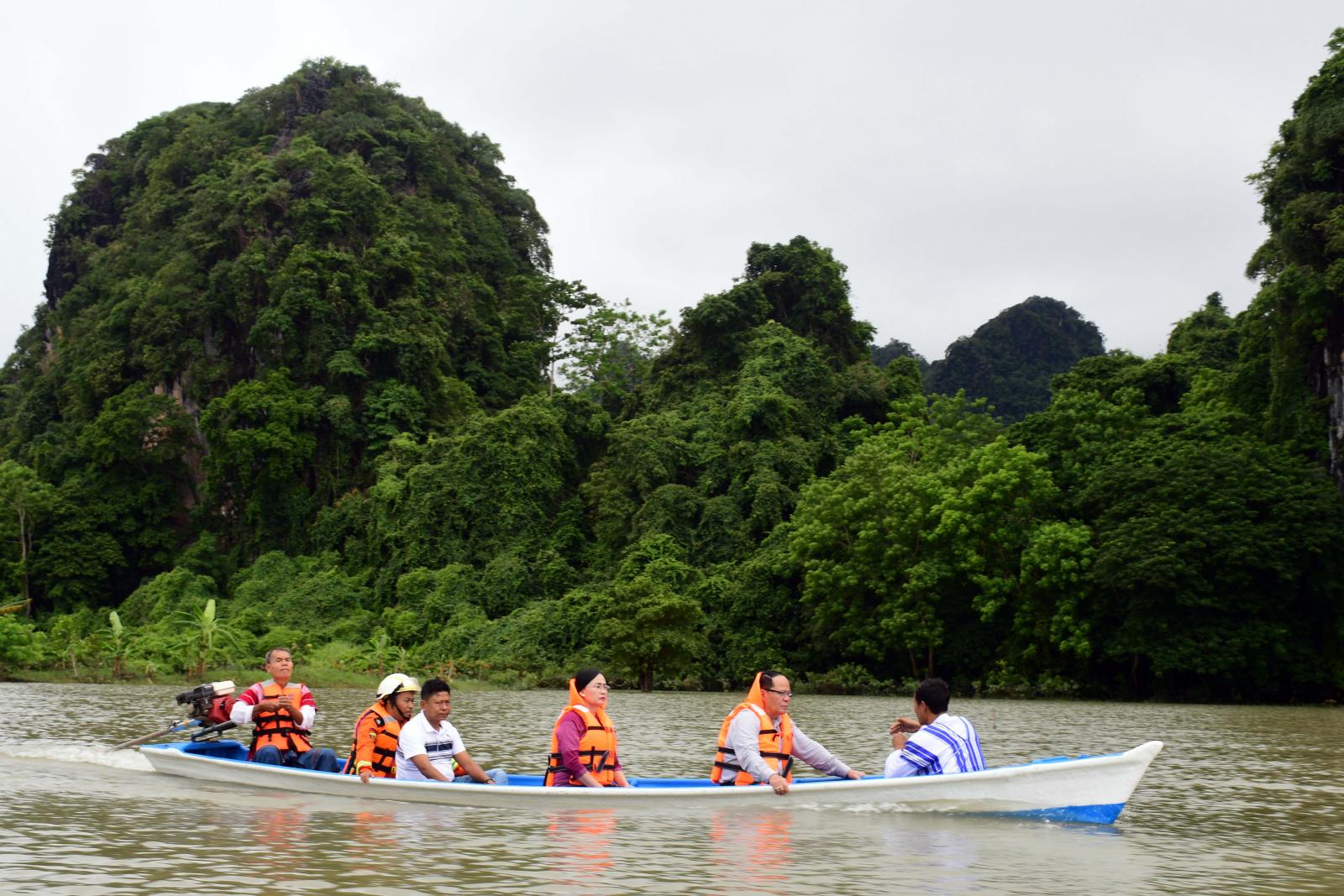 ယင်းနောက် ပြည်နယ်ဝန်ကြီးချုပ်နှင့်တာဝန်ရှိသူများသည် ဆဒ္ဒန်ဂူတည်ရှိရာ ဇွဲကပင်တောင်တန်း၏ တောင် ဘက်အစွန်ဆုံး ဆင်ဟိုင်းတောင်အားပတ်၍ ဆဒ္ဒန်ဆင်မင်းပျော်မွေ့ခဲ့သည့် ဆဒ္ဒန်အိုင်ဟုတင်စားခေါ်ဝေါ်ကြသော ဘေးမဲ့ရေအိုင်သို့ သဘာဝရေလျှံကွင်းအားဖြတ်သန်းကာ အပျော်စီးစက် တပ်လှေငယ်များစီး၍ စိမ်းစိုသာယာလှပသော သဘာဝအလှအပများကို ကြည့်ရှုလေ့လာခဲ့ကြကြောင်း သိရသည်။