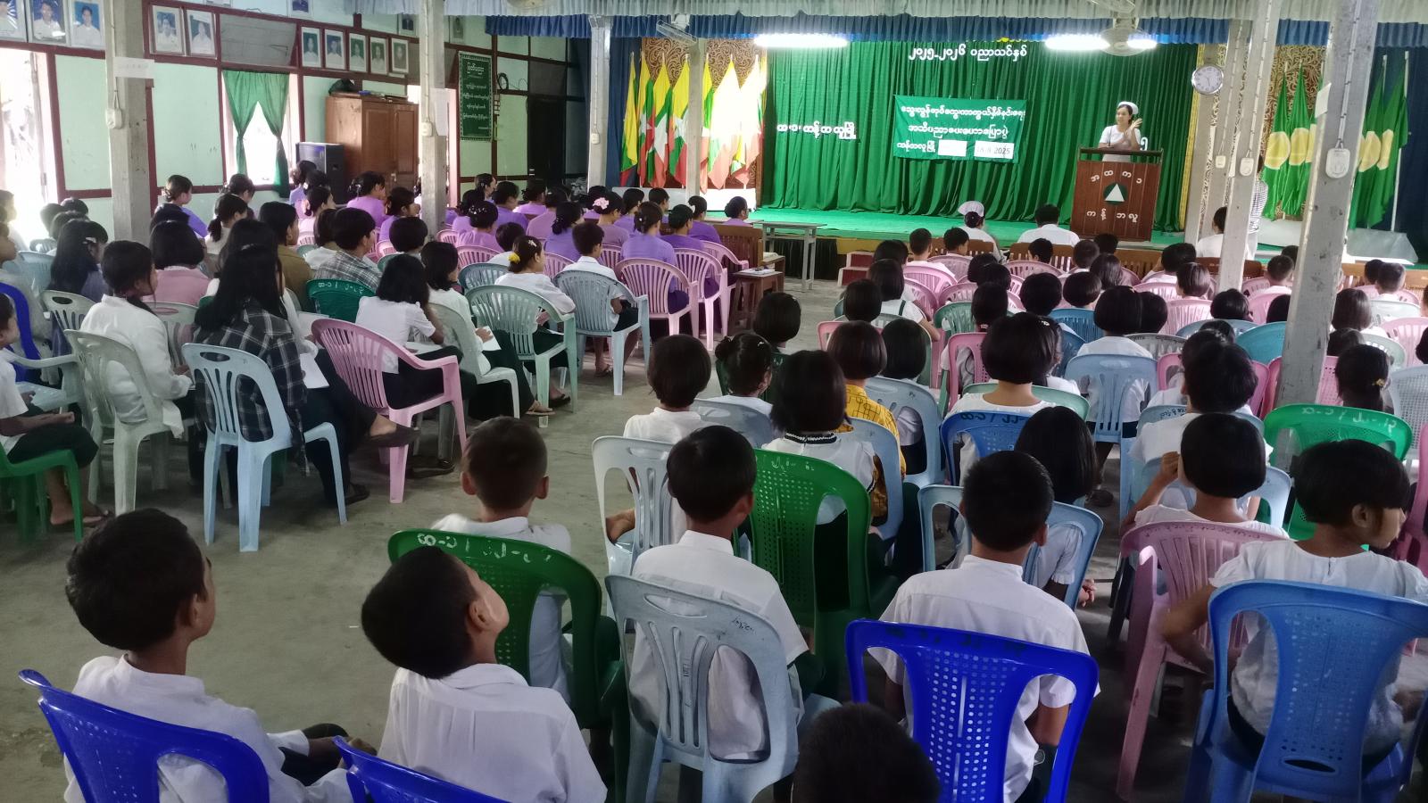 အခမ်းအနားတွင် မြို့နယ်ပြည်သူ့ကျန်းမာရေးဦးစီးဌာန ကျန်းမာရေးဆရာမ ဒေါ်ဝင်းဝင်းမြင့်က အာဟာရဖွံ့ဖြိုးရေးရင်သတ္တပတ်နှင့် ကျောင်းကျန်းမာရေးသီတင်းပတ်အခမ်းအနား ကျင်းပရခြင်း၏ ရည်ရွယ်ချက်များကိုလည်းကောင်း၊ သားဖွားဆရာမ ဒေါ်ထိုက်ထိုက်နိုင်ရည်က အာဟာရဖွံ့ဖြိုးရေး အစာအုပ်စု(၃)အုပ်စုနှင့် စနစ်တကျသွားတိုက်နည်းစနစ်များကိုလည်းကောင်း၊ ငှက်ဖျားတိုက်ဖျက်ရေးဌာန ဆရာဦးစံဝင်းက ခြင်ကြောင့်ဖြစ်ပွားတတ်သောရောဂါများအကြောင်းတို့ကိုလည်းကောင်း အသိပညာပေးဟောပြောကြသည်။ ထို့နောက် ခရိုင်/မြို့နယ်မိခင်နှင့်ကလေးစောင့်ရှောက်ရေးအသင်းဝင်များက သွေးလွန်တုပ်ကွေးရောဂါကာကွယ်ရေး အသိပညာပေး လက်ကမ်းစာစောင်များ ဖြန့်ဝေပေးကြသည်။
