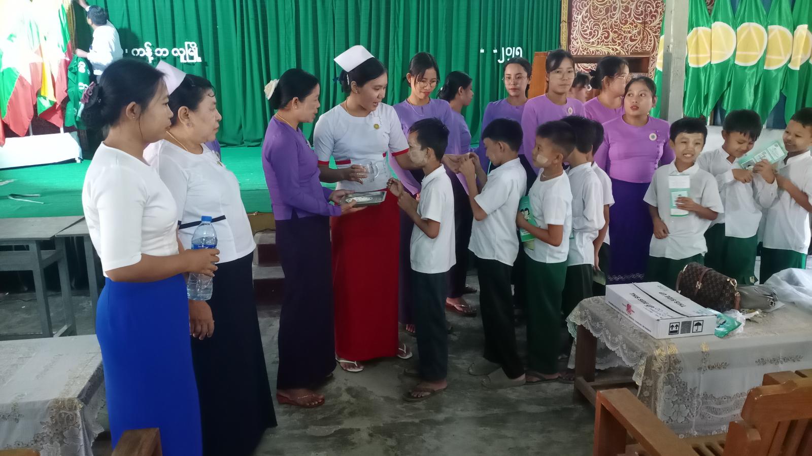 ထို့နောက် KG ကျောင်းသား၊ ကျောင်းသူများကို ကိုယ်အလေးချိန်ခြင်း၊ အရပ်တိုင်းတာခြင်း၊ သွားနှင့်ခံတွင်းသန့်ရှင်းရေးနှင့်လိုအပ်သည့်ကျန်းမာရေးစစ်ဆေးခြင်းများ၊ KG တန်းမှ G-12 ကျောင်းသားကျောင်းသူများကို သန်ချဆေးတိုက်ကျွေးခြင်း၊ အပျိုဖော်ဝင်ကျောင်းသူများကို သံဓာတ်အားဆေးများတိုက်ကျွေးခြင်းများ ဆောင်ရွက်ပေးခဲ့ကြောင်း သိရသည်။