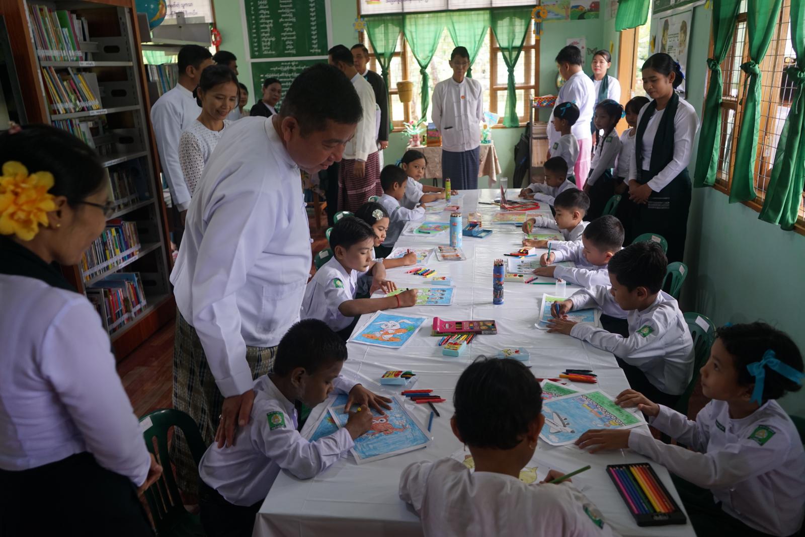 ဆက်လက်၍ မွန်ပြည်နယ် ဝန်ကြီးချုပ်နှင့် ပြည်နယ်အစိုးရဖွဲ့ဝင်ဝန်ကြီးများက ကွမ်သဲ (အ.ထ.က) ကျောင်းစာကြည့်တိုက်အတွင်း စာဖတ်ရှိန်မြှင့်တင်ရေးအနေဖြင့် ဆောင်ရွက်နေသည့် ဆေးရောင်ခြယ်ပြိုင်ပွဲ၊ စာဖတ်စွမ်းရည်ပြိုင်ပွဲနှင့် ပုံပြင်ပြောပြိုင်ပွဲ ဆောင်ရွက်နေမှုများအား ကြည့်ရှုအားပေးကာ ဆုရ ကျောင်းသား၊ ကျောင်းသူများအား ဂုဏ်ပြုဆုလက်ဆောင်များ ပေးအပ်ချီးမြှင့်ခဲ့ပြီး ကျောင်းသား၊ ကျောင်းသူများနှင့် ရင်းရင်းနှီးနှီးတွေ့ဆုံကာ ထူးချွန်သော လူတော်လူကောင်းများ ပေါ်ထွန်းစေရေးဆုံးမစကားများ ပြောကြားခြင်းနှင့် ကျောင်းအတွင်း လိုအပ်သည်များကို ပေါင်းစပ်ညှိနှိုင်းဖြည့်ဆည်းဆောင်ရွက်ပေးခဲ့ကြောင်း သိရသည်။