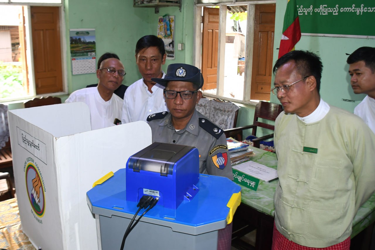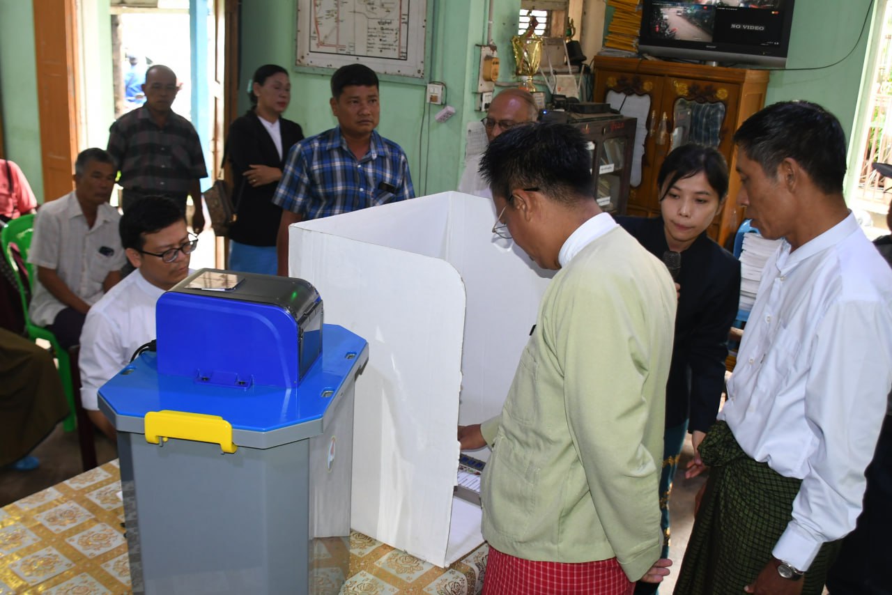 မွန်ပြည်နယ်၊ မော်လမြိုင်မြို့နယ်၊ လှိုင်ရပ်ကွက်၊ ရပ်ကွက်အုပ်ချုပ်ရေးမှူးရုံး၌ ယနေ့နံနက်ပိုင်းတွင် မြန်မာအီလက်ထရောနစ်မဲပေးစက် (MYANMAR ELECTRONIC VOTING MACHINE) (MEVM) အသုံးပြု၍ လက်တွေ့သရုပ်ပြစမ်းသပ်မဲပေးလေ့လာခြင်း အသိပညာပေးလုပ်ငန်းဆောင်ရွက်ခဲ့ကြောင်း သိရသည်။