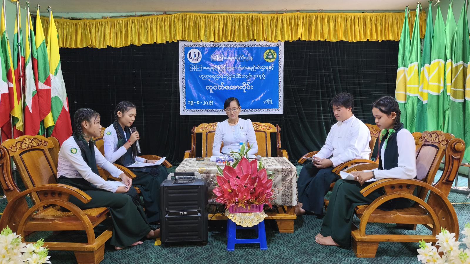 ကျောင်းသား၊ ကျောင်းသူလူငယ်များ ဗလငါးတန်ဖွံ့ဖြိုးတိုးတက်စေရန် ပြန်ကြားရေးနှင့်ပြည်သူ့ဆက်ဆံရေးဦးစီဌာနနှင့် အခြေခံပညာဦးစီးဌာနတို့ပူးပေါင်း၍ လူငယ်စကားဝိုင်းကို ယနေ့နံနက်(၁၀)နာရီက မွန်ပြည်နယ်၊ မုဒုံမြို့ အခြေခံပညာအထက်တန်းကျောင်း (ညောင်ကုန်း)၌ ကျင်းပခဲ့သည်။