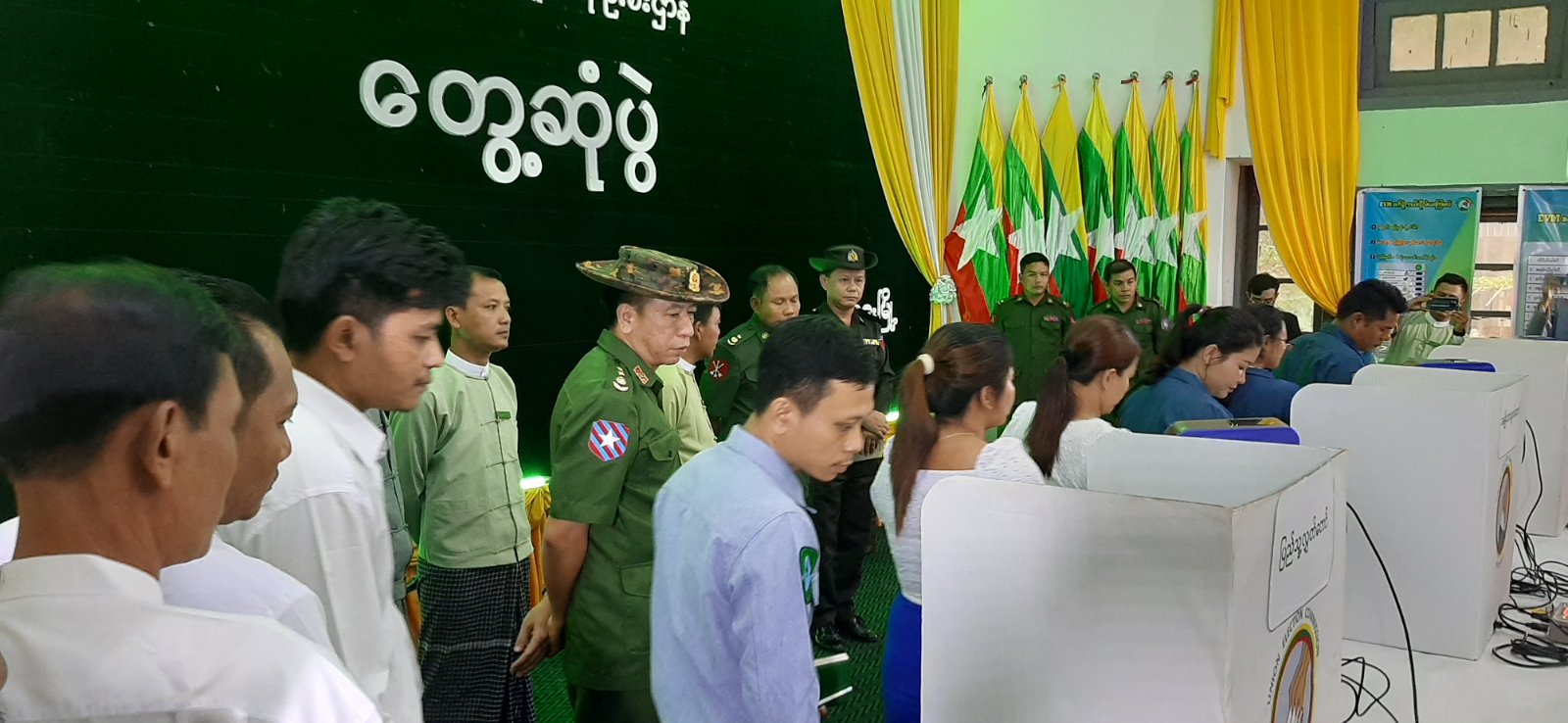 ထို့နောက် စမ်းသပ်မဲပေးခြင်းသရုပ်ပြပွဲကိုဆောင်ရွက်ခဲ့ရာ ရေးမြို့နယ်၊ တပ်နယ်မှူး ဗိုလ်မှူးကြီး ကောင်းဇော်မြင့်၊ ရေးခရိုင် စီမံခန့်ခွဲရေးနှင့်အုပ်ချုပ်ရေးကော်မတီဥက္ကဋ္ဌ ခရိုင်အုပ်ချုပ်ရေးမှူး ဦးစန်းမင်း၊ ခရိုင်စီမံခန့်ခွဲရေးနှင့်အုပ်ချုပ်ရေးကော်မတီအဖွဲ့ဝင်များက ဌာနအလိုက် တာဝန်ရှိသူများနှင့် ဝန်ထမ်းများ၏ မြန်မာအီလက်ထရောနစ်မဲပေးစက်ဖြင့် ကိုယ်တိုင်စမ်းသပ်မဲပေးနေမှုတို့ကို လိုက်လံကြည့်ရှုအားပေးခဲ့ကြောင်း သိရသည်။