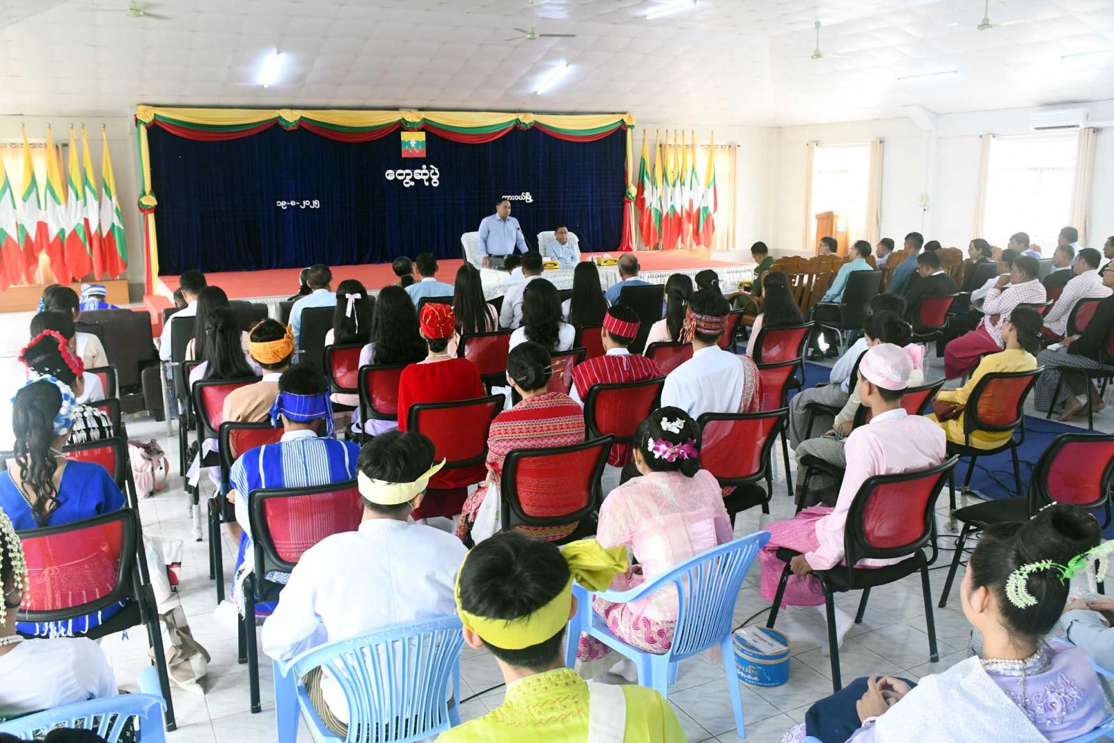 ဆက်လက်၍ နယ်စပ်ရေးရာဝန်ကြီးဌာနနှင့် တိုင်းရင်းသားလူမျိုးများရေးရာဝန်ကြီးဌာန ပြည်ထောင်စုဝန်ကြီး ဒုတိယဗိုလ်ချုပ်ကြီးရာပြည့်က တိုင်းရင်းသားစည်းလုံးညီညွတ်ရေးအတွက် တစ်မြေတည်းနေ တစ်ရေတည်းသောက် တိုင်းရင်းသားလူမျိုးစု ညီအစ်ကိုမောင်နှမများအားလုံးသည် အငြင်းပွားမှုများမဖြစ်စေရန် တိုင်းရင်းသားအချင်းချင်း ချစ်ကြည်လေးစားမှု၊ ရိုင်းပင်းကူညီမှုနှင့် စစ်မှန်သောပြည်ထောင်စုစိတ်ဓာတ်ဖြင့် လူမှုဘဝဖွံ့ဖြိုး တိုးတက်သော နိုင်ငံတော်ကိုတည်ဆောက်နိုင်ရန်၊ နိုင်ငံတော်၏စီးပွားရေး ဖွံ့ဖြိုးတိုးတက်စေရန် သွင်းကုန်များ လျှော့ချနိုင်ရန်အတွက် ပြည်တွင်းကုန်ထုတ်လုပ်ငန်းများအား ခေတ်မီနည်းစနစ်များဖြင့် ပို့ကုန်ကဏ္ဍကို မြှင့်တင်ဆောင်ရွက်နိုင်ရန်၊ နိုင်ငံတော်အေးချမ်းသာယာပြီး တိုင်းရင်းသားရိုးရာ ယဉ်ကျေးမှု ပွဲတော်အခမ်းအနားများကို စည်ကားသိုက်မြိုက်စွာ ကျင်းပနိုင်ရေးနှင့် ပညာရေးကိစ္စရပ်များ၊ စာပေနှင့်ယဉ်ကျေးမှုများကို မြှင့်တင်ပေးရန်လိုအပ်ပါကြောင်း၊ နိုင်ငံအတွင်းမှီတင်းနေထိုင်ကြသော တိုင်းရင်းသားမိသားစုများ အားလုံး အငြင်းပွားမှုလျော့နည်းစေရန် စီးပွားရေးဖြင့်စုစည်းရန်လိုကြောင်း၊ ဆင်းရဲမှုပပျောက်စေရန်အတွက် လူသားအရင်းအမြစ် ဖွံ့ဖြိုးတိုးတက်ရေးနှင့် ပြည်သူ့ရေးရာစီမံခန့်ခွဲမှု နည်းစနစ်များဖြင့် အုပ်ချုပ်ရေး၊ တရားစီရင်ရေးတို့ကို  ကောင်းမွန်စွာဆောင်ရွက်နိုင်သော ပြည်သူ့ရေးရာ အုပ်ချုပ်မှုစနစ်များကို ဖော်ဆောင်ပေးရန်လိုအပ်ပါကြောင်း၊ လူမှုအသိပညာများတိုးတက်စေရေးအတွက် တိုင်းရင်းသားများစည်းလုံးညီညွတ်စွာပူးပေါင်းဆောင်ရွက်ပေးရန်လိုအပ်ပါကြောင်း မှာကြားသည်။ ထို့နောက် တိုင်းရင်းသားလူမျိုးများရေးရာဝန်ကြီးဌာန ဒုတိယဝန်ကြီးက လိုအပ်သည်များကို ပေါင်းစပ်ညှိနှိုင်းဆောင်ရွက်ပေးသည်။