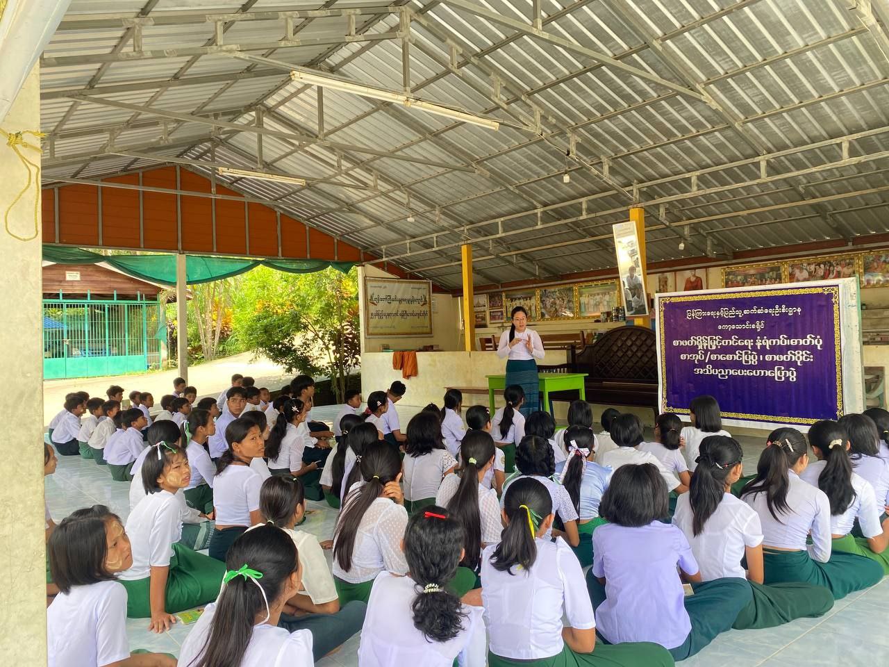 အသိပညာပေးဆောင်ရွက်ရာတွင် ခရိုင်ပြန်ကြားရေးနှင့်ပြည်သူ့ဆက်ဆံရေးဦးစီးဌာန ဦးစီးအရာရှိ ဒေါ်မေဇင်ဦးက စာဖတ်စွမ်းရည်တိုးတက်စေရန်နှင့် အသိပညာဗသုတများ တိုးပွားစေရန် အားလပ်ချိန်များတွင် ဗဟုသုတရရှိသည့် စာအုပ်စာစောင်များအား ဖတ်ရှုလေ့လာရန်၊ ကျောင်းသား/ ကျောင်းသူများအနေဖြင့် ကျောင်းစာပညာရပ်များသာမက ဗလငါးတန်နှင့်ပြည်စုံ၍ အကျင့်စာရိတ္တ ကောင်းမွန်ပြီး အသိဉာဏ်ပညာဖွံ့ဖြိုးသူများဖြစ်စေရန် ပြင်ပစာအုပ်၊ စာပေတို့ကို လေ့လာရန်နှင့် ကျောင်းသား၊ ကျောင်းသူများအနေဖြင့် စာဖတ်သည့်အလေ့အကျင့် ပြုစုပျိုးထောင်ကြရန် လိုအပ်ကြောင်း၊ စာဖတ်ခြင်းမှရရှိသည့် အကျိုးကျေးဇူးများနှင့် သုတ၊ ရသစာပေအမျိုးအစားများအကြောင်း အသိပညာပေး ဟောပြောခဲ့သည်။
