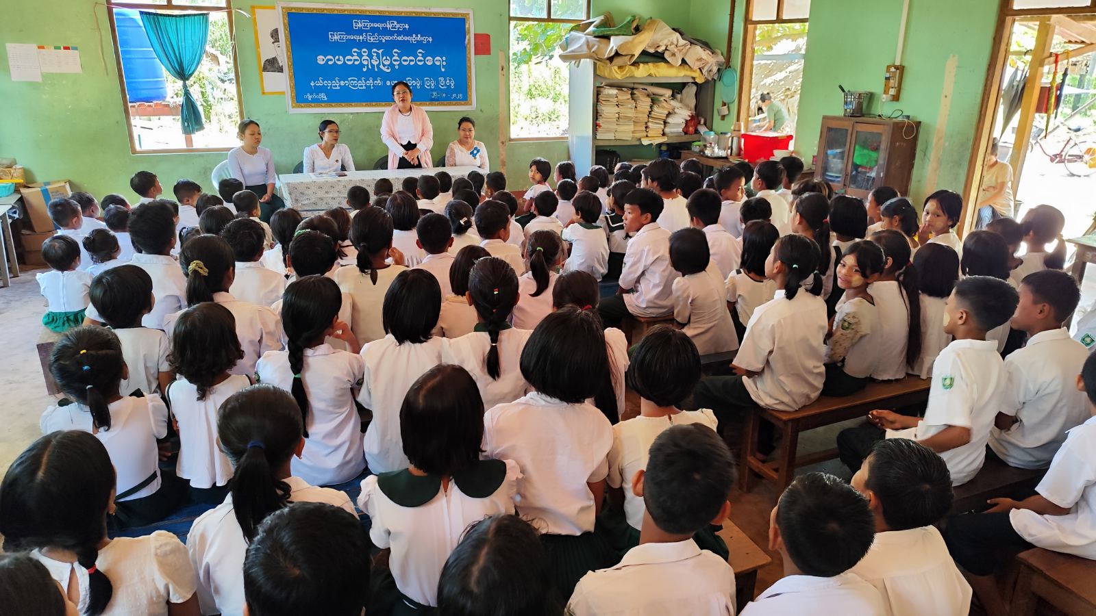 ရှေးဦးစွာ ကျောင်းအုပ်ဆရာမကြီး ဒေါ်တင်ထားအေးက အမှာစကားပြောကြားပြီး ပြန်ကြားရေးနှင့်ပြည်သူ့ဆက်ဆံရေးဦးစီးဌာနမှ ဝန်ထမ်းများက ကျောင်းသား၊ ကျောင်းသူများ အားလပ်ချိန်တွင် အချိန်ကို အကျိုးရှိစွာအသုံးပြုရေး၊ ကျောင်းစာကိုကြိုးစားကြသလို ဗဟုသုတတိုးပွားရေးအတွက် ပြင်ပစာပေများကိုပါ လေ့လာဖတ်ရှုကြရေးနှင့် မူးယစ်ဆေးဝါးအန္တရာယ်အသိပညာပေးမှုများကို ဟောပြောဆွေးနွေးခဲ့သည်။