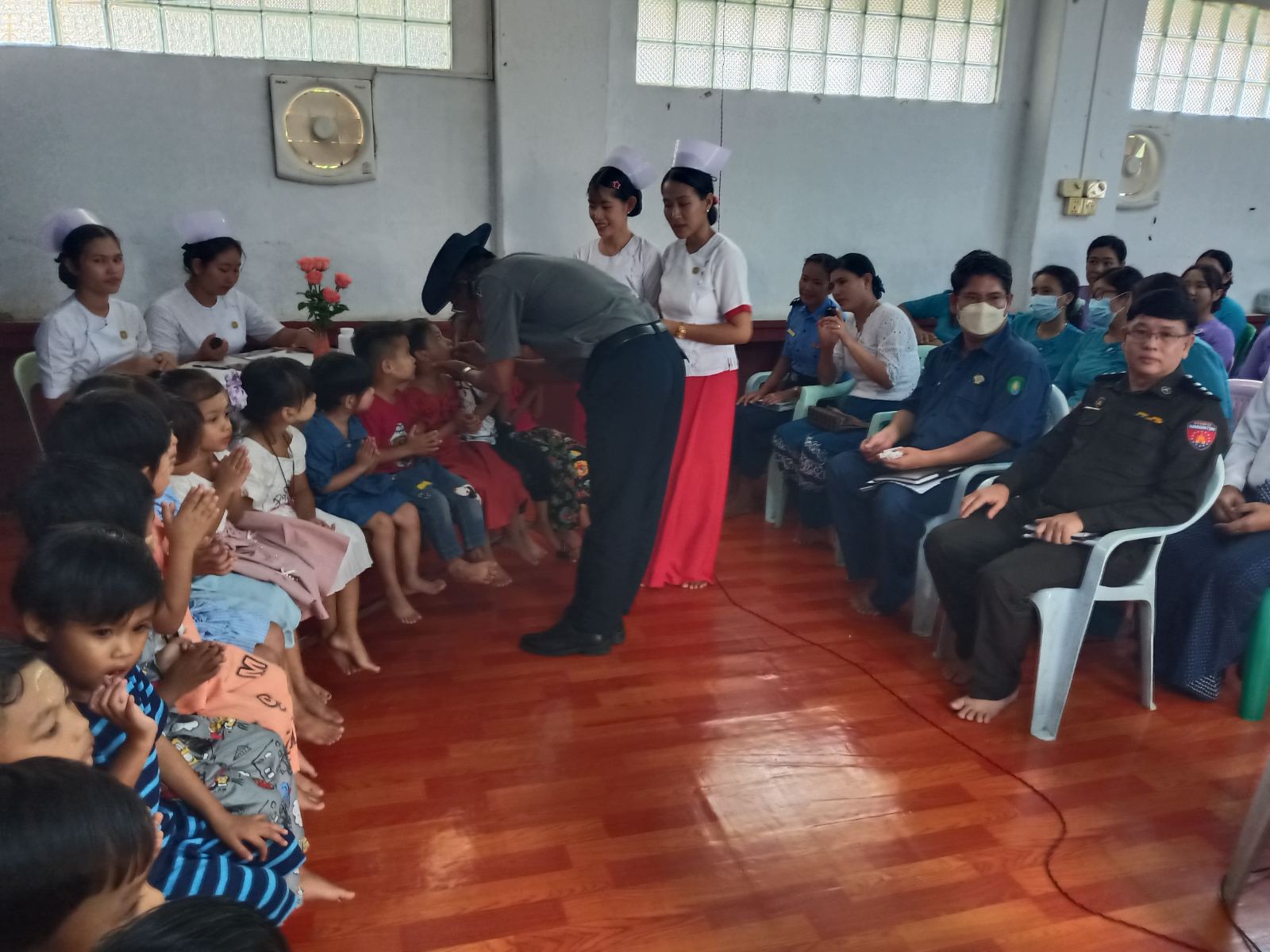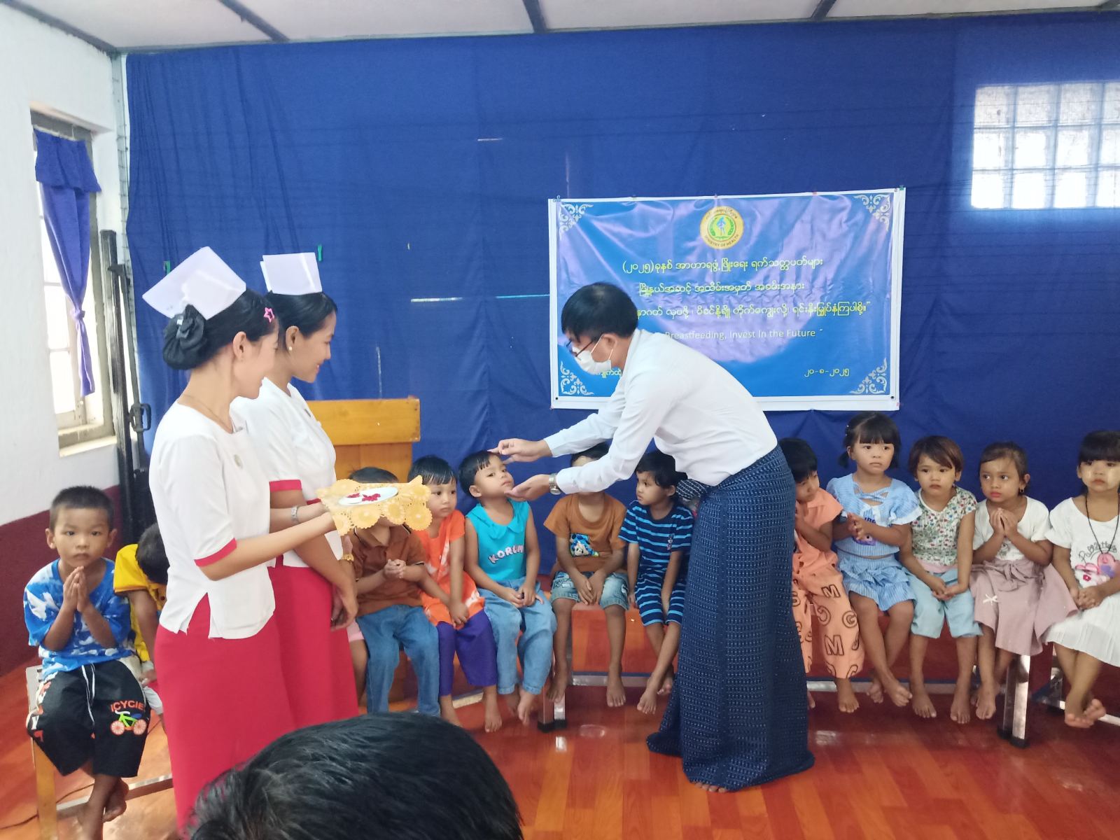 ယင်းနောက် တက်ရောက်လာသည့်ဌာနဆိုင်ရာအကြီးအကဲများနှင့် ကျန်းမာရေးဝန်ထမ်းများက ကလေးငယ်များအားအာဟာရဖွံ့ဖြိုးစေရန် ဗီတာမင်အေတိုက်ကျွေးခဲ့ကြကြောင်းသိရသည်။