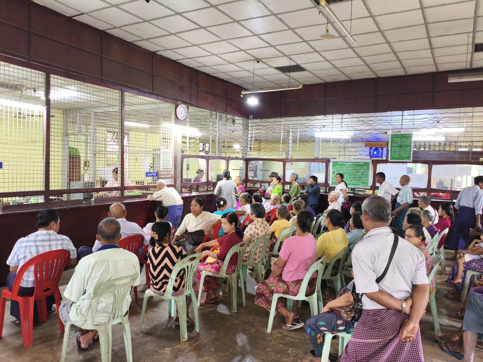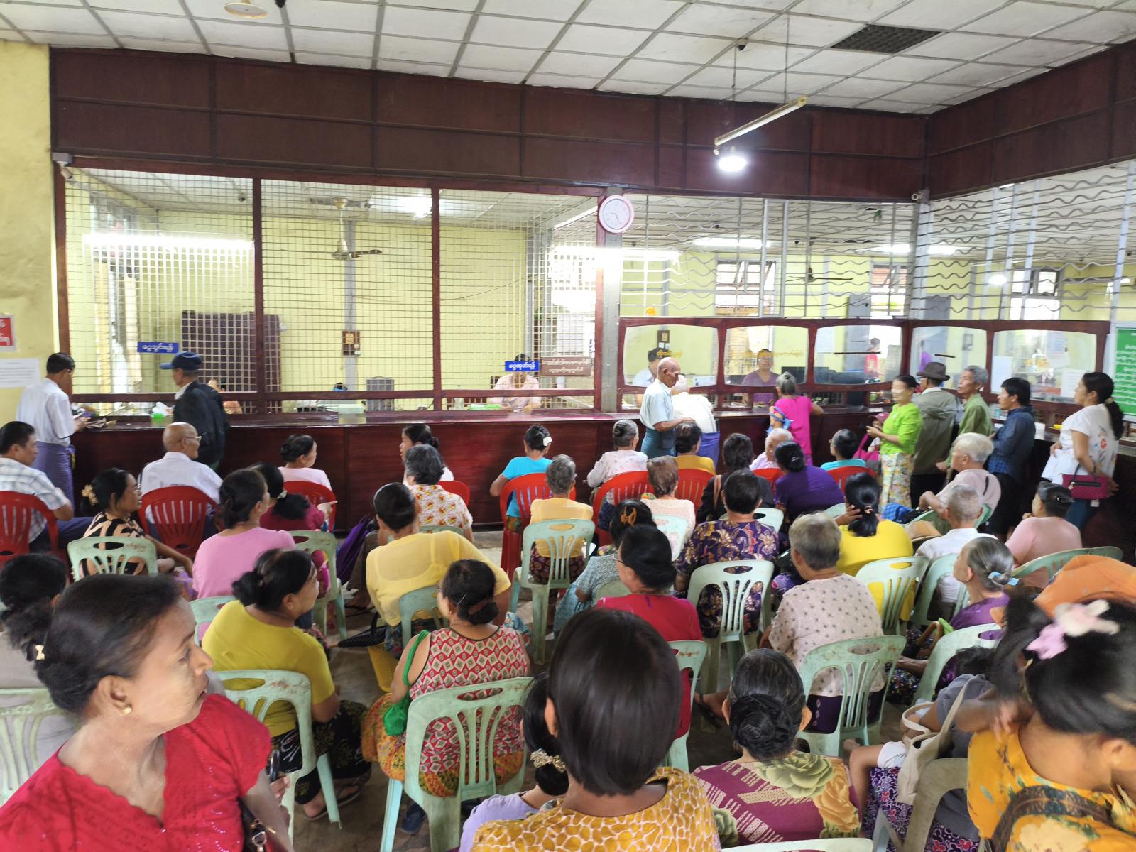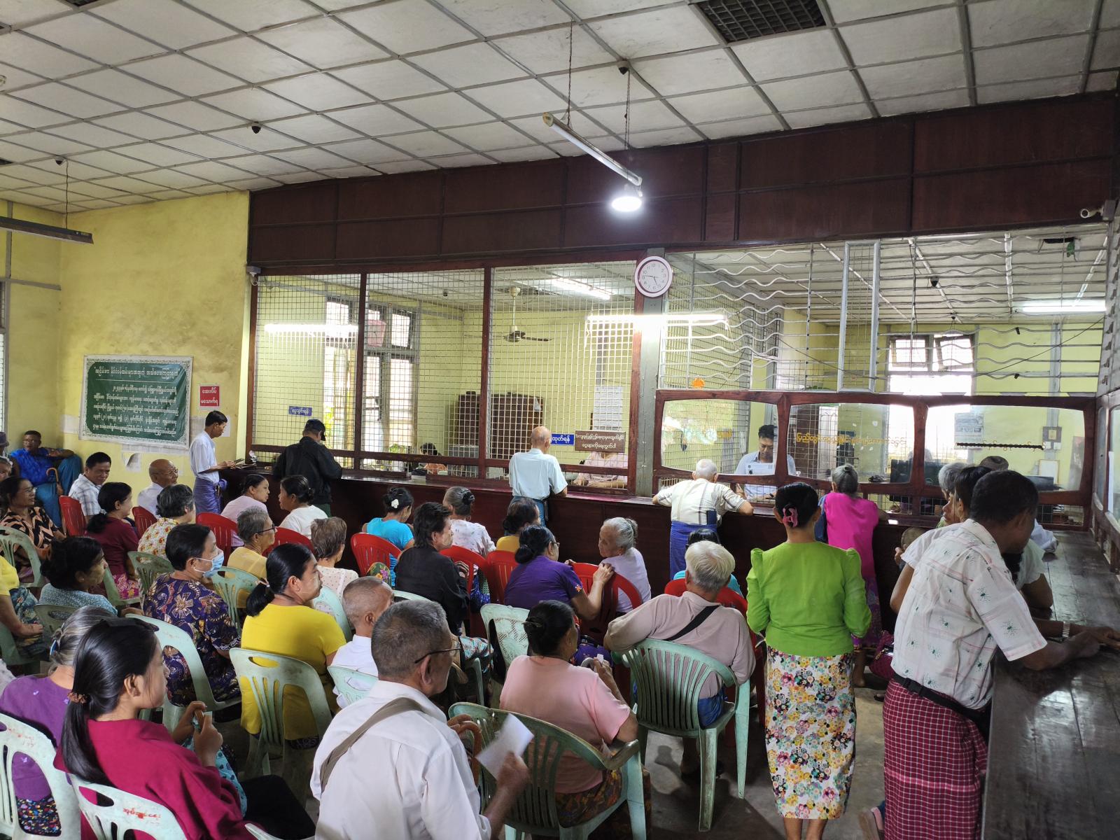 အငြိမ်းစားဝန်ထမ်းများ၏ ပင်စင်လစာငွေများထုတ်ပေးရာတွင် အငြိမ်းစားဝန်ထမ်းများအနေဖြင့် လိုအပ်သည့်အထောက်အထားများဖြင့် မိမိတို့အဆင်ပြေသည့်နေ့တွင်လာရောက်ထုတ်ယူနိုင်ကြောင်း၊ ကိုယ်စားလှယ်ဖြင့်ထုတ်ယူလိုပါက ပင်စင်လစာထုတ်ယူရာတွင် အဆင်ပြေချောမွေ့စေရေးအတွက် မြန်မာ့စီးပွားရေးဘဏ်မှတာဝန်ခံများက စာရင်းဖြည့်သွင်းခြင်းများဆောင်ရွက်ပေးပြီး ပင်စင်လစာငွေများအားအလှည့်ကျစနစ်ဖြင့်ထုတ်ပေးခြင်း၊ အသက်အရွယ်ကြီးရင့်သူများ အခက်အခဲမရှိစေရေးကိုလည်းဆောင်ရွက်ပေးလျက်ရှိပြီး မြို့နယ်ကျန်းမာရေးဦးစီးဌာနမှ ပင်စင်လစာထုတ်ပေးသည့်ရက်မှစ၍ ၃ ရက်တိုင်တိုင် မြို့နယ်ပြည်သူ့ဆေးရုံတွင် ကျန်းမာရေးစောင့်ရှောက်ပေးလျက်ရှိသည်။