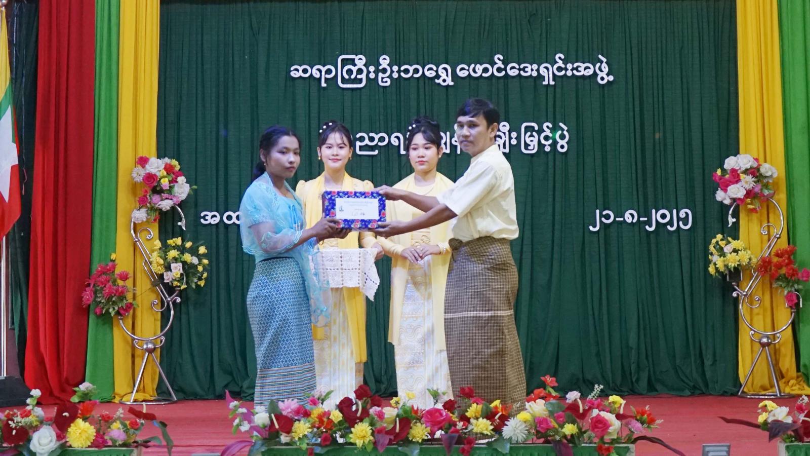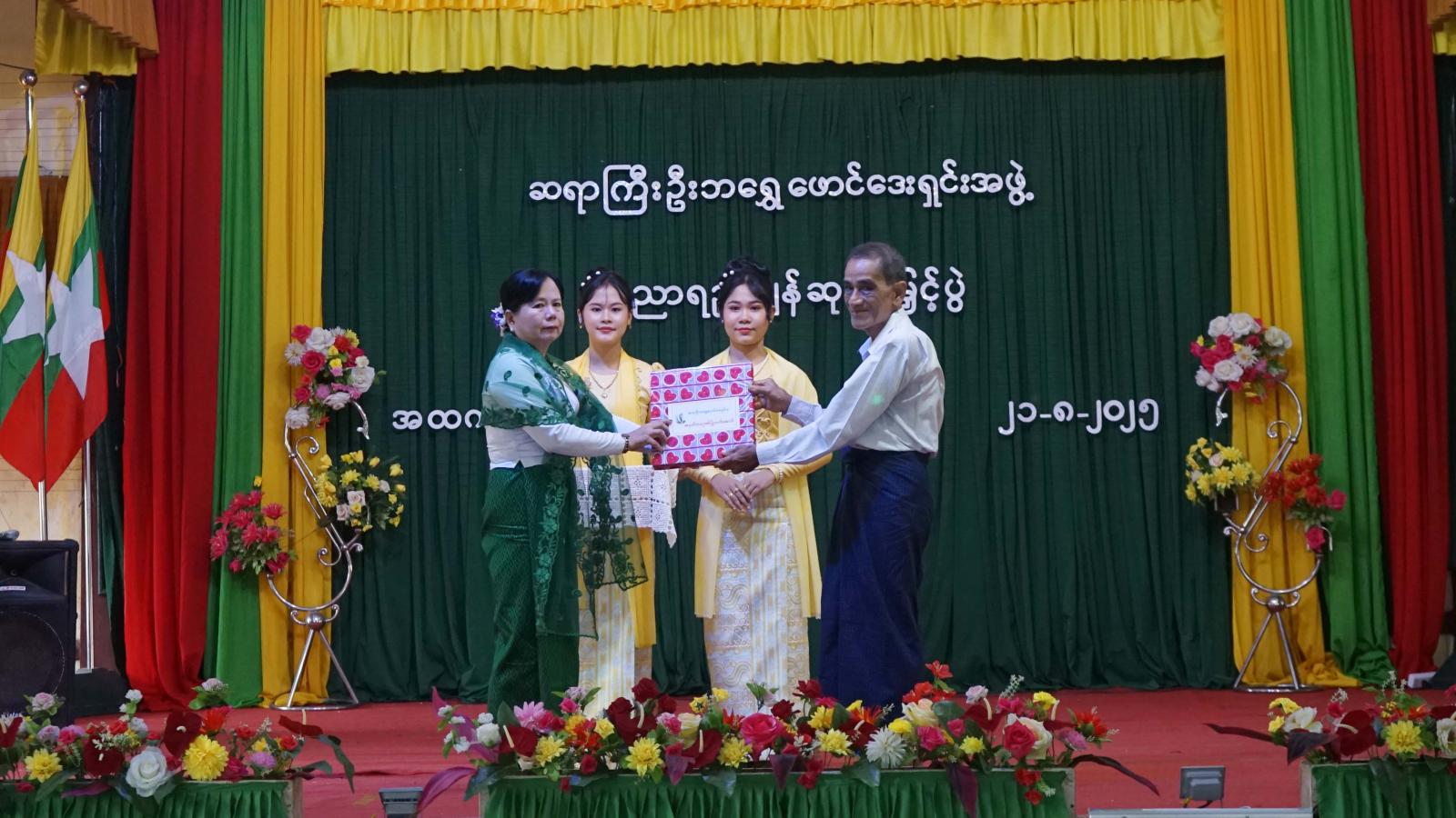 အခမ်းအနားကို ကျောင်းသား/ကျောင်းသူများက ဆရာကြီး ဦးဘရွှေဖောင်ဒေးရှင်းအဖွဲ့၊ နာယက ဦးတင်ကြွယ်က အမှာစကား ပြောကြားခဲ့ပြီး ဥက္ကဋ္ဌ ဒေါ်ယဉ်ယဉ်ဆင့်က ဆရာကြီး ဦးဘရွှေဖောင်ဒေးရှင်းကို ၂၀၁၁ ခုနှစ် စတင်ဖွဲ့စည်းခဲ့ပြီး၊ နှစ်စဉ် တက္ကသိုလ်ဝင်တန်း အောင်မြင်သူများနှင့် ထူးချွန်ကျောင်းသား/ကျောင်းသူများကို ပညာရည်ချွန်ဆုများ ချီးမြှင့်ပေးနိုင်ရန် ရည်ရွယ်၍ ဖွဲ့စည်းခဲ့ခြင်းဖြစ်ကြောင်း ရှင်းလင်းပြောကြားသည်။